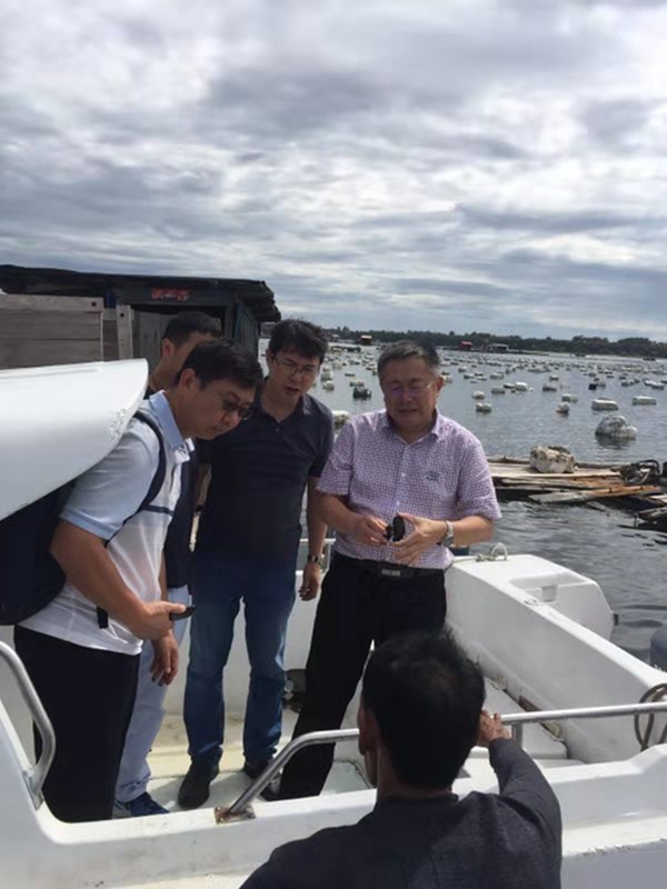 2019年8月21日上午,茅云翔副校长陪同包振民院士一行到陵水黎安港实地考察当地水产养殖情况。包振民院士向当地渔民详细了解麒麟菜、翡翠贻贝养殖生产发展现状及存在的问题,并对黎安泄湖发展海藻、贝类养殖,以及开发生态修复和发展休闲渔业等方面提出建议。考察期间,包振民院士还向海南省南海鱼类种苗协会蔡春有会长了解海水鱼类种苗产业发展现状,并就海南发展水产种业等问题进行了深入交流。