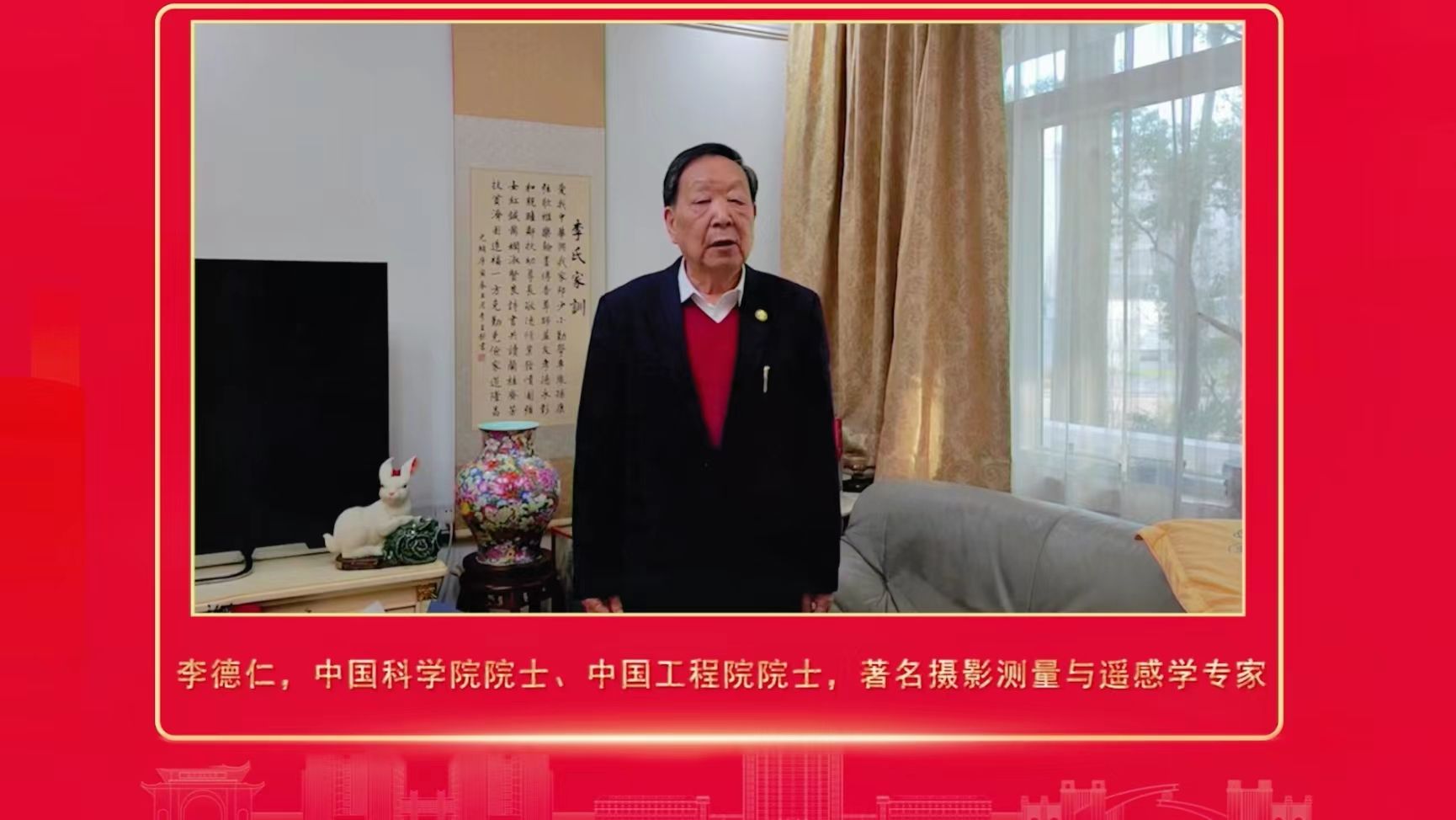 ▲中国科学院院士、中国工程院院士、著名摄影测量与遥感学专家李德仁祝福视频