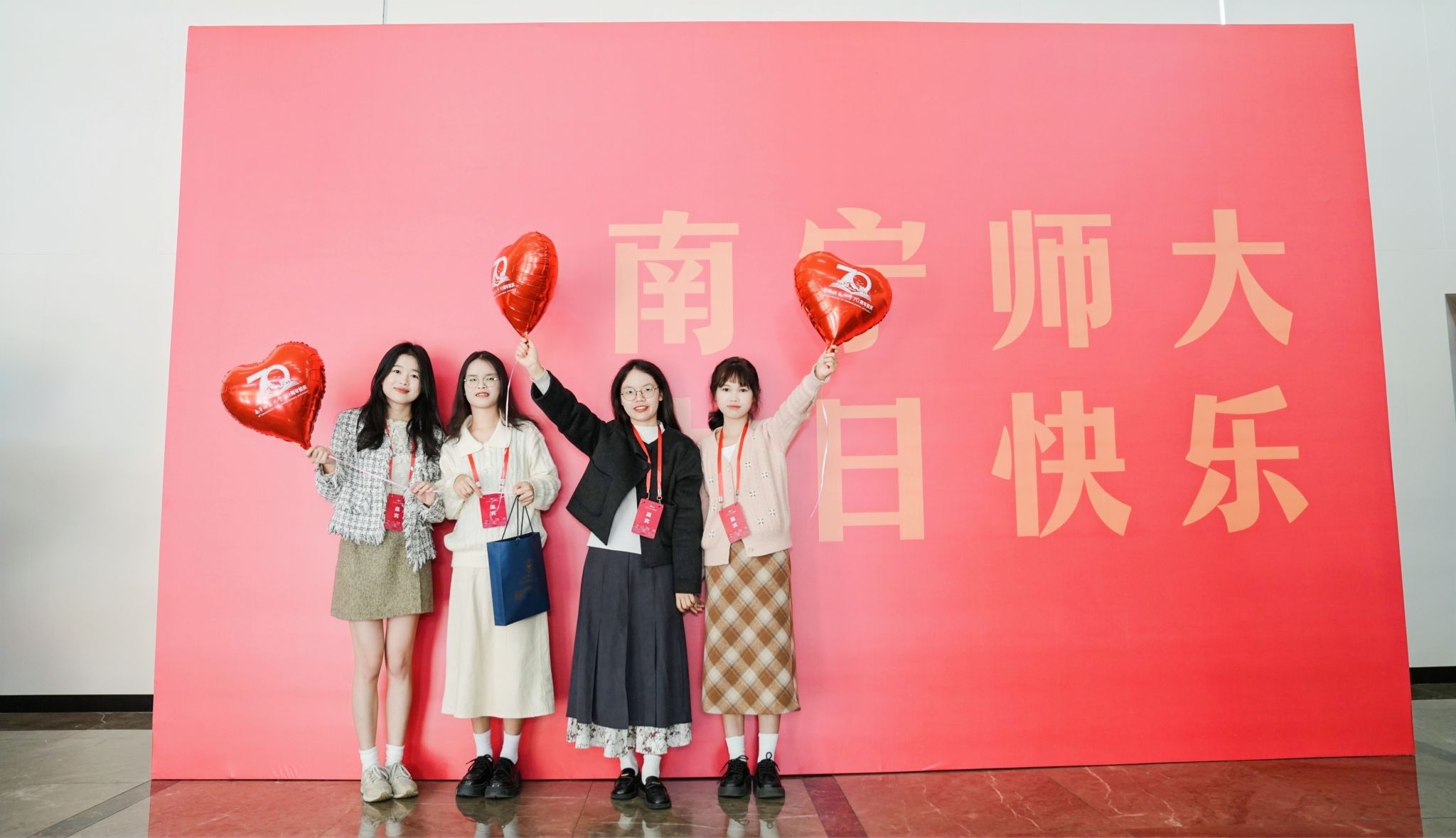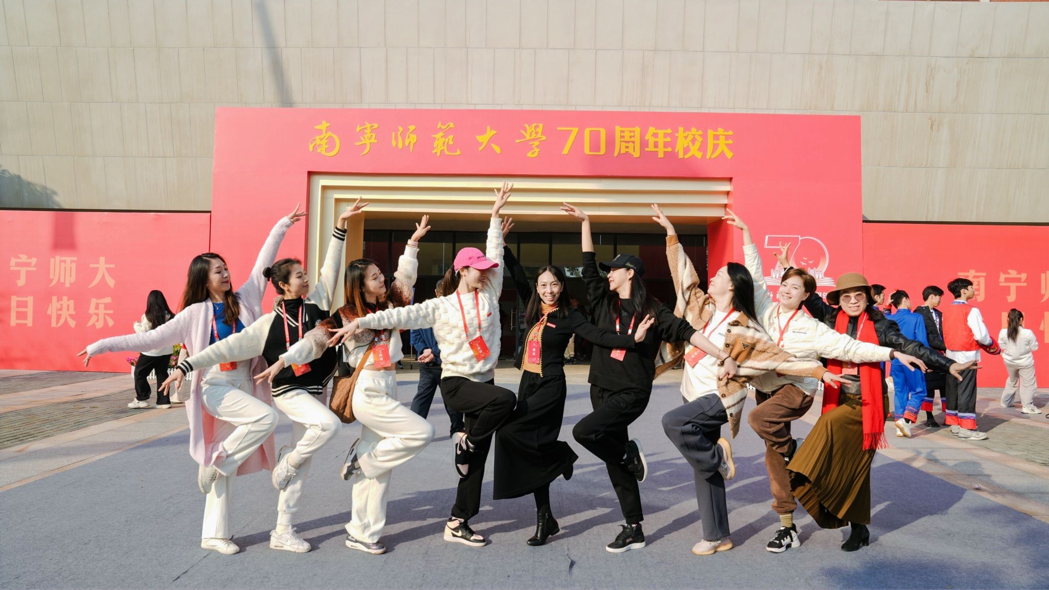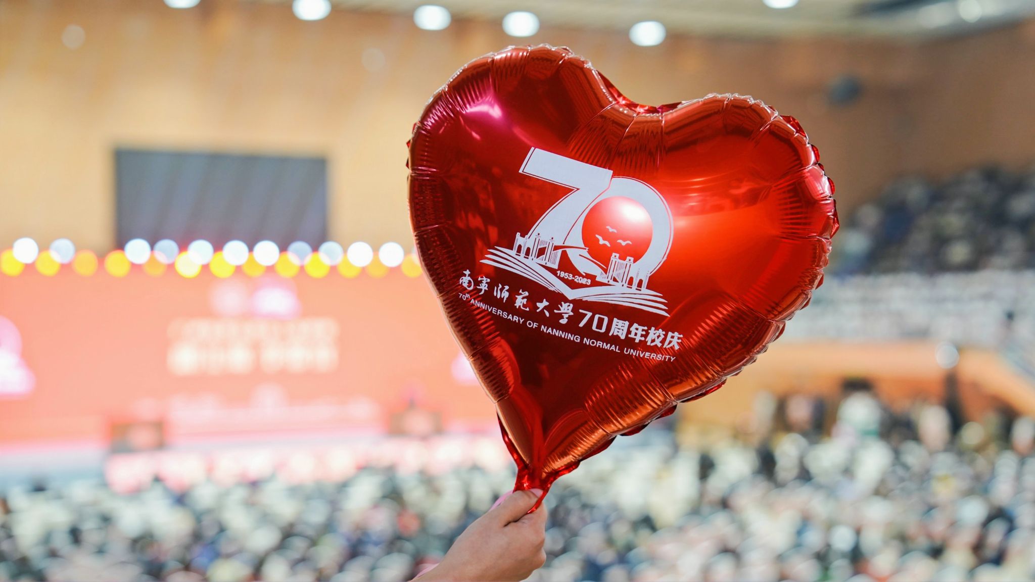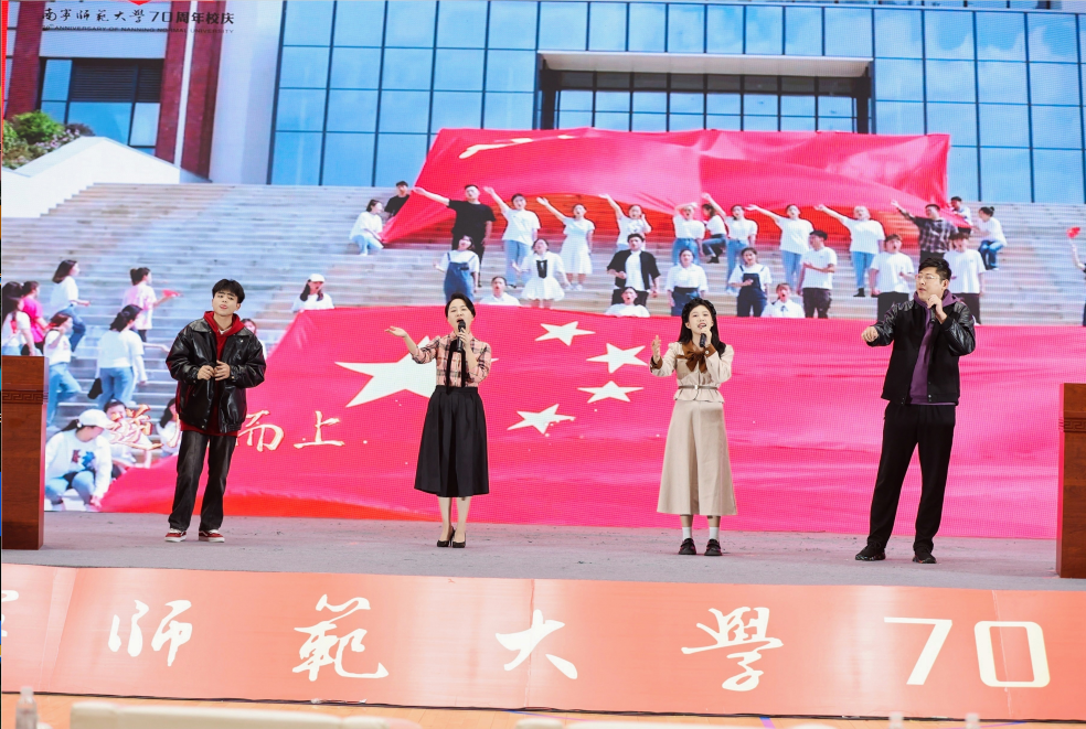 百余名师生献词,祝福学校七十华诞。“奋进新时代,做有为青年”,师生们情感饱满,声音激荡。“胸前戴着南师的校徽”“身上刻着南师的印记”“爱南师”“强学校”一平一仄讲述着对学校的感恩与祝福;“看见光,成为光,追随光”“让我们牢记习近平总书记的谆谆教导,做有理想、敢担当、能吃苦、肯奋斗的新时代有为青年!”每字每句,传递出青年的时代担当。