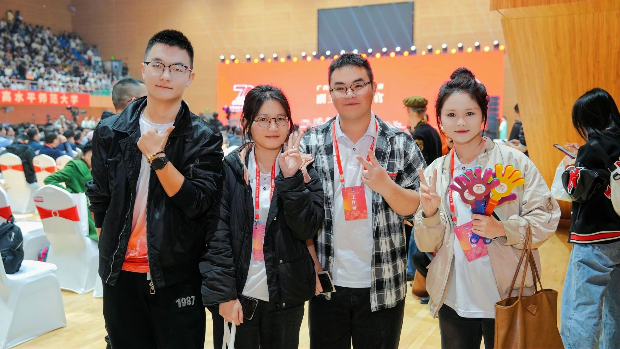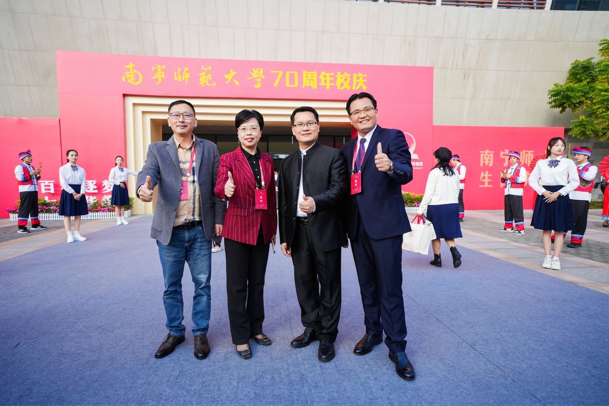 自治区人大常委会副主任、学校校友刘有明,自治区副主席李常官,自治区党委原政法委书记、自治区政协原副主席、学校校友温卡华,自治区人大常委会原副主任、学校校友莫永清,中国科学院院士王秋良,自治区人民政府副秘书长梁磊,自治区教育厅厅长刘友谊,自治区党委宣传部等有关区直部门领导,南宁市等地市领导,陕西师范大学、广西大学等区内外80余所高校负责人出席本次大会。此外,有关区县及其教育局领导,合作单位代表,社会各界来宾,媒体朋友,学校现任校领导、老领导、师生代表、校友代表等。