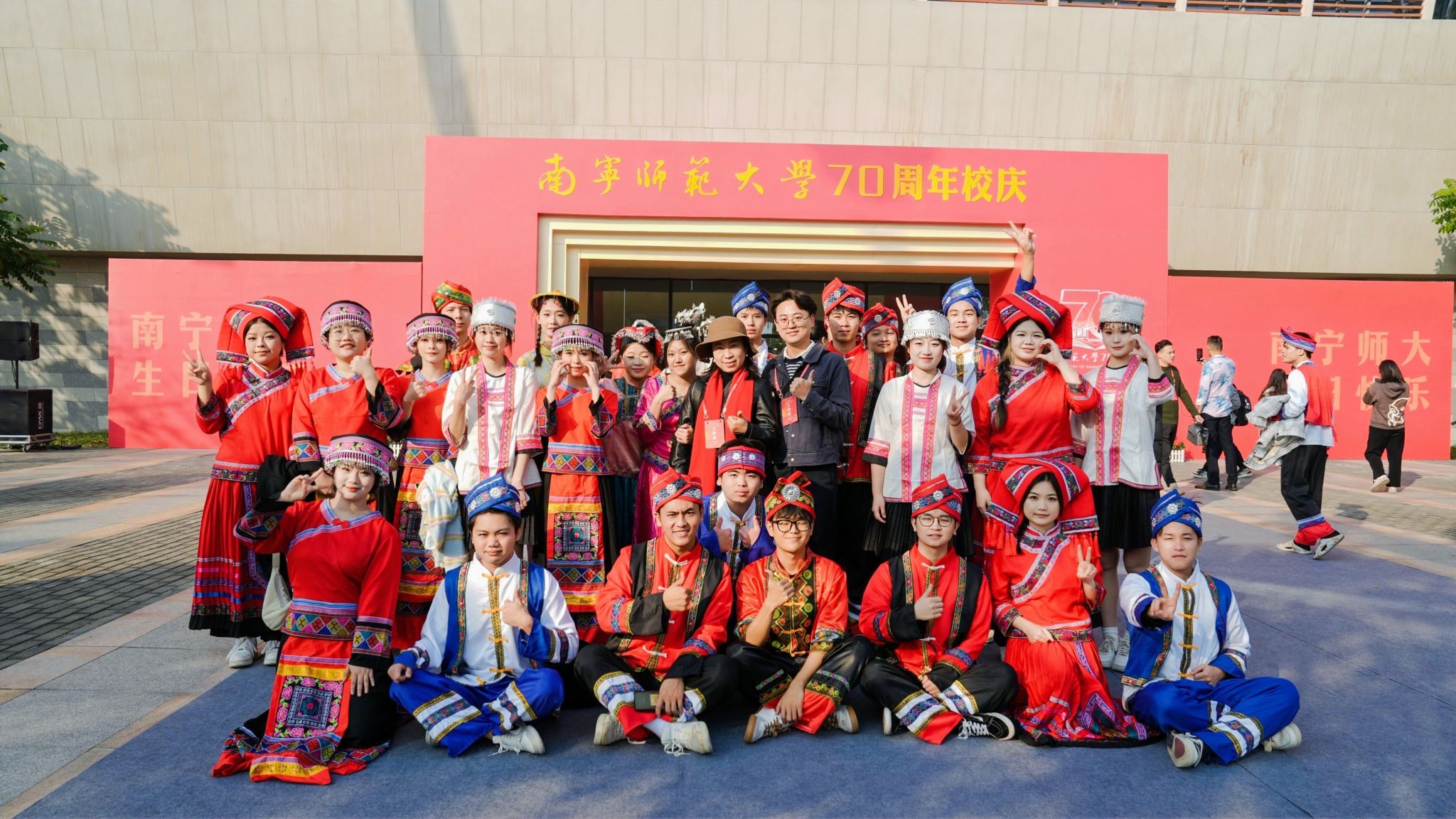 李丰生书记在主持讲话中表示,七秩春秋风雨兼程育英才,百年树人继往开来谱新篇。今天的庆祝大会翻开了学校发展历史的崭新一页。站在新的起点上,学校将继续以习近平新时代中国特色社会主义思想为指引,全面贯彻落实自治区党委、政府决策部署,为奋力谱写中国式现代化广西篇章、全面建设社会主义现代化国家贡献南师人的智慧和力量!