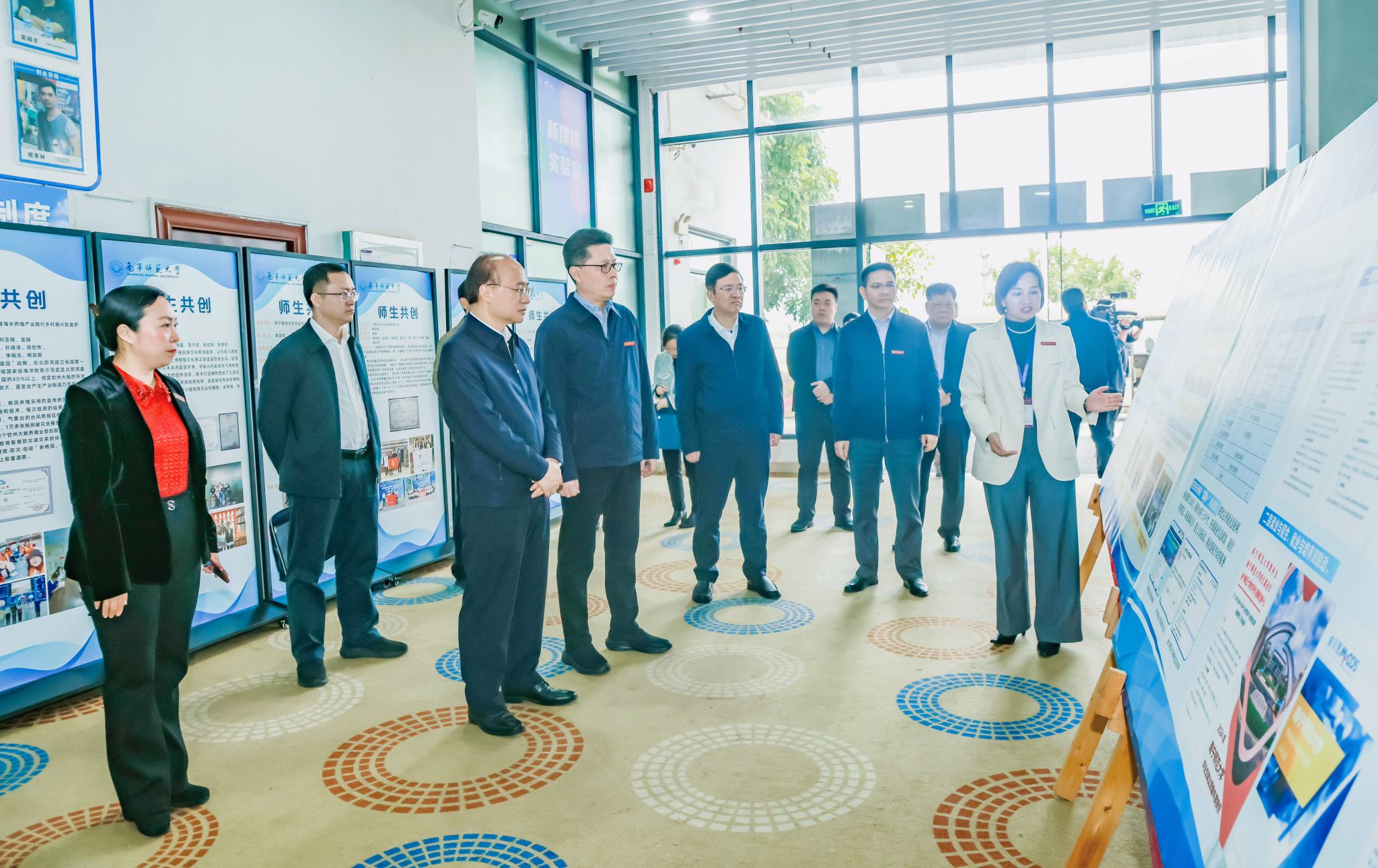 自治区教育厅厅长刘友谊,自治区人力资源和社会保障厅副厅长韦杰等有关领导参加调研,Beat365正版唯一官网必一党委书记张鹏、校长隆广庆、副校长龙妮娜等领导陪同调研。