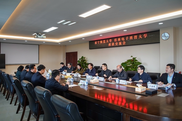 3月20日,广西科技大学党委书记赵君、副校长邓朗妮热情接待了张鹏一行。双方在文昌校区办公楼5—1会议室座谈交流。该校有关部门负责人分别围绕人才强校、科研工作、实验室实训基地建设等作了专题汇报。Beat365有关部门负责人就校地企合作、机构改革、人事管理、实验室管理等方面工作向对方请教。会前,张鹏一行实地参观学校规划馆、文昌校区和柳东校区相关实验室。