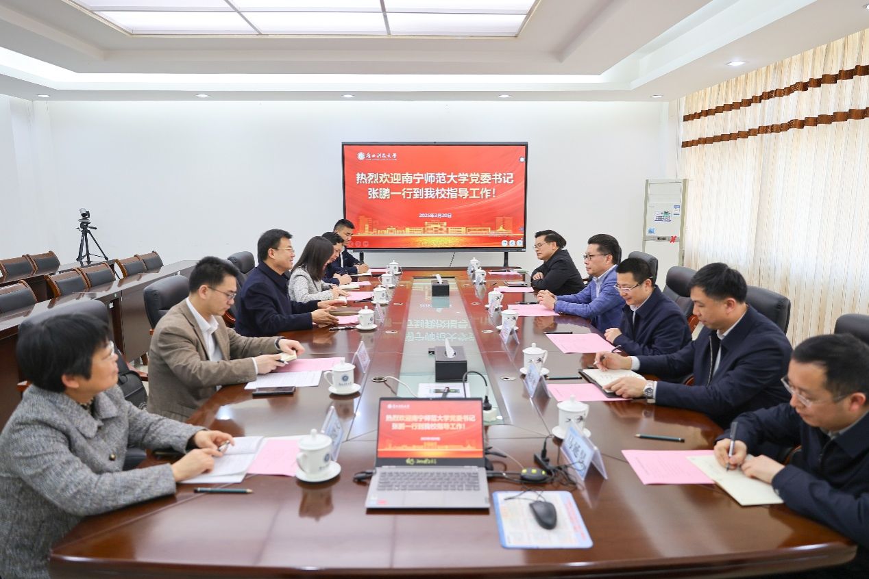 为深入贯彻国家人工智能发展战略和自治区党委“以人工智能+赋能千行百业”要求,推动“AI+”赋能教育高质量发展,3月19日至21日,学校党委书记张鹏、副校长王国红率领学校党办校办、人事处、科研管理处、国有资产与实验室管理中心等部门负责人前往桂林、柳州、来宾三地兄弟高校走访调研,就人工智能实验室建设、重点实验室建设和管理、校地企合作、产学研一体化等工作展开调研交流。