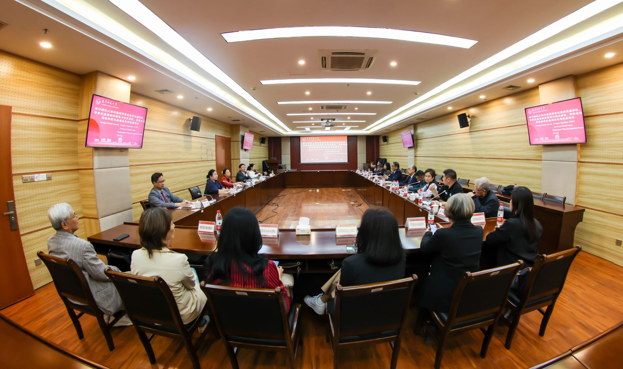 泰国素攀武里小学教育服务区办公室主任及三所学校的校长对学校的热情接待表示感谢,分别介绍了教育发展的基本情况及国际化办学优势,表达了建立友好合作关系、开拓多形式合作渠道的愿景。
