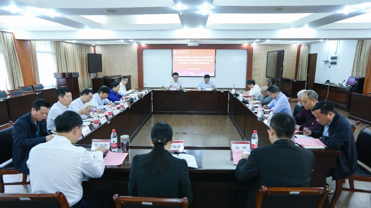 3月27日上午,Beat365党委常委会深入贯彻中央八项规定精神学习教育读书班暨学校党委理论学习中心组2025年第一次专题学习集中研讨会在明秀校区鸿远楼409会议室召开。学校党委书记张鹏主持会议。