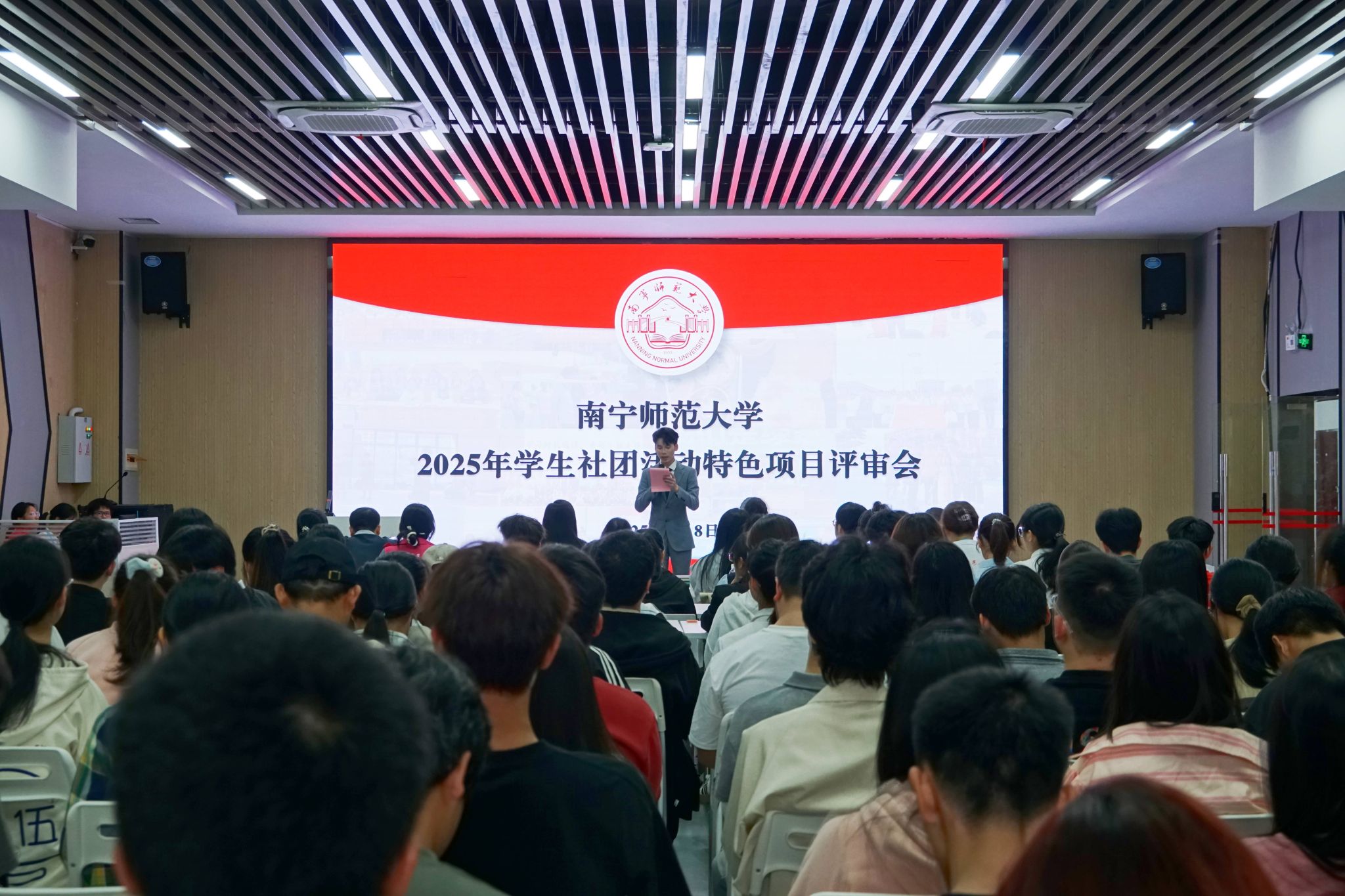 为加强学校学生社团规范化建设,努力打造一批可示范、可引领、可推广、可持续的学生社团活动特色项目品牌,4月8日,Beat365在武鸣校区兰园食堂三楼B7路演大厅举办2025年学生社团活动特色项目评审会。校团委书记区丽媛、党委宣传部副部长叶郁、党委学生工作部副部长何健、校团委副书记何俊斌担任本次评审会评委,各学院团委书记代表和学生社团代表等100余名师生参加了本次评审会。