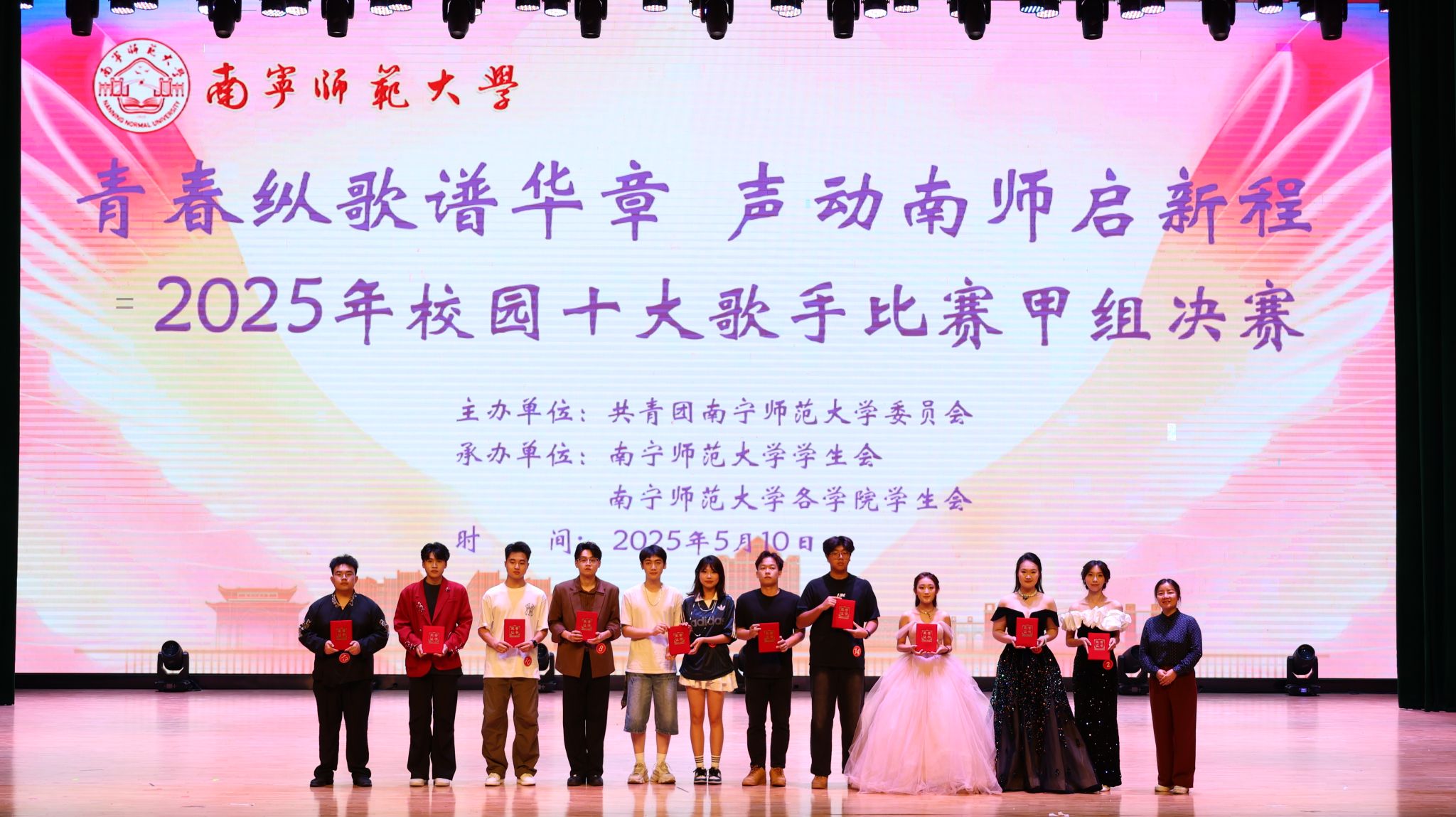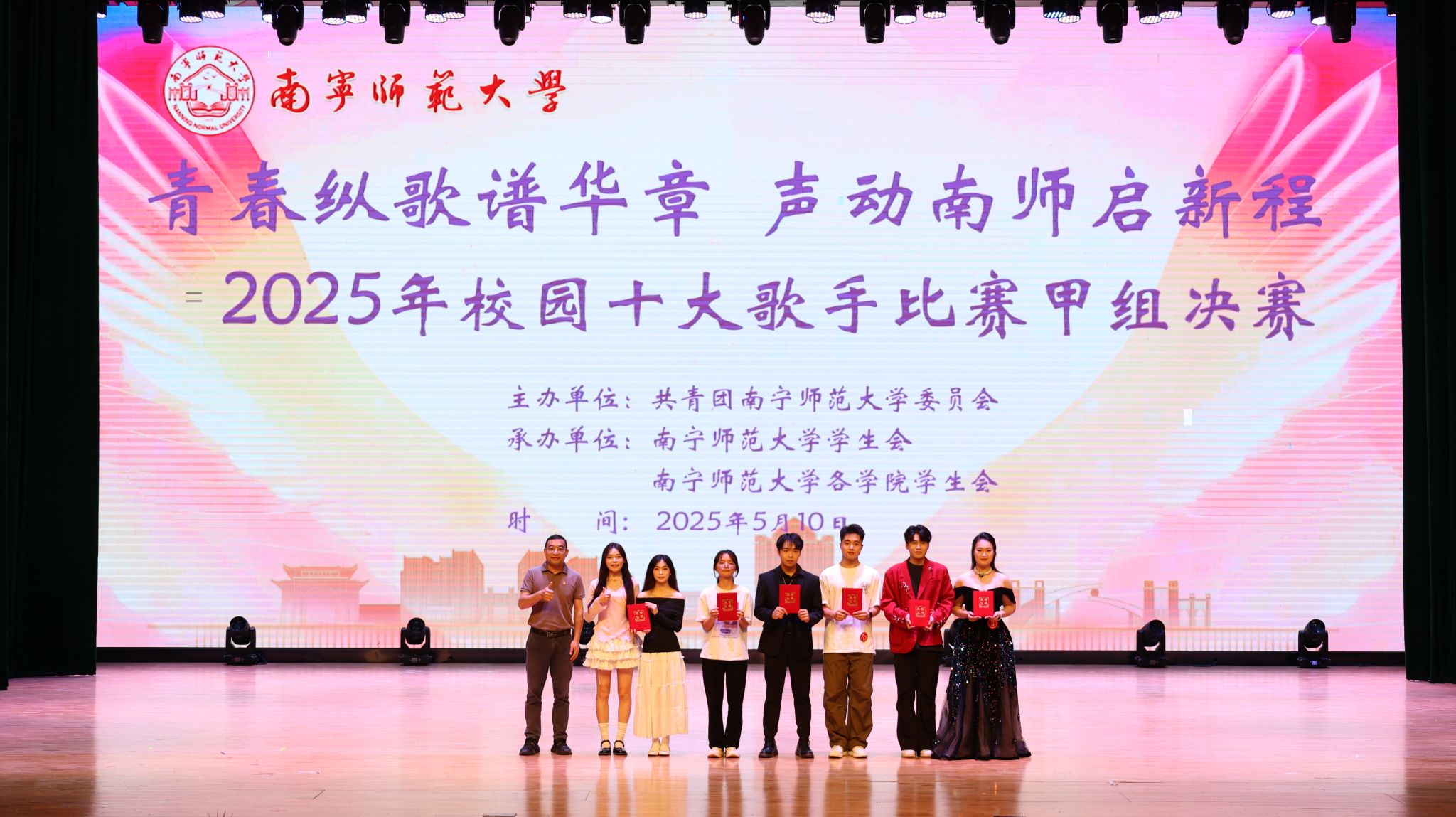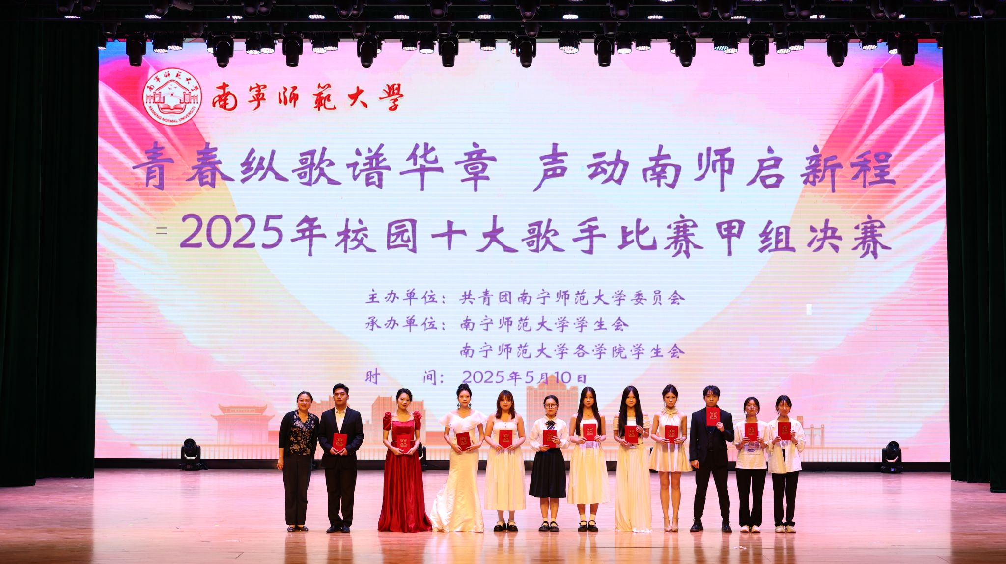 5月10日,Beat365举办“青春纵歌谱华章,声动南师启新程”校园十大歌手决赛。党办校办、党委组织部、党委宣传部、党委学生工作部、校团委等部门负责人,兄弟院校嘉宾以及全校师生代表1300余人共同见证了这场青春盛会。