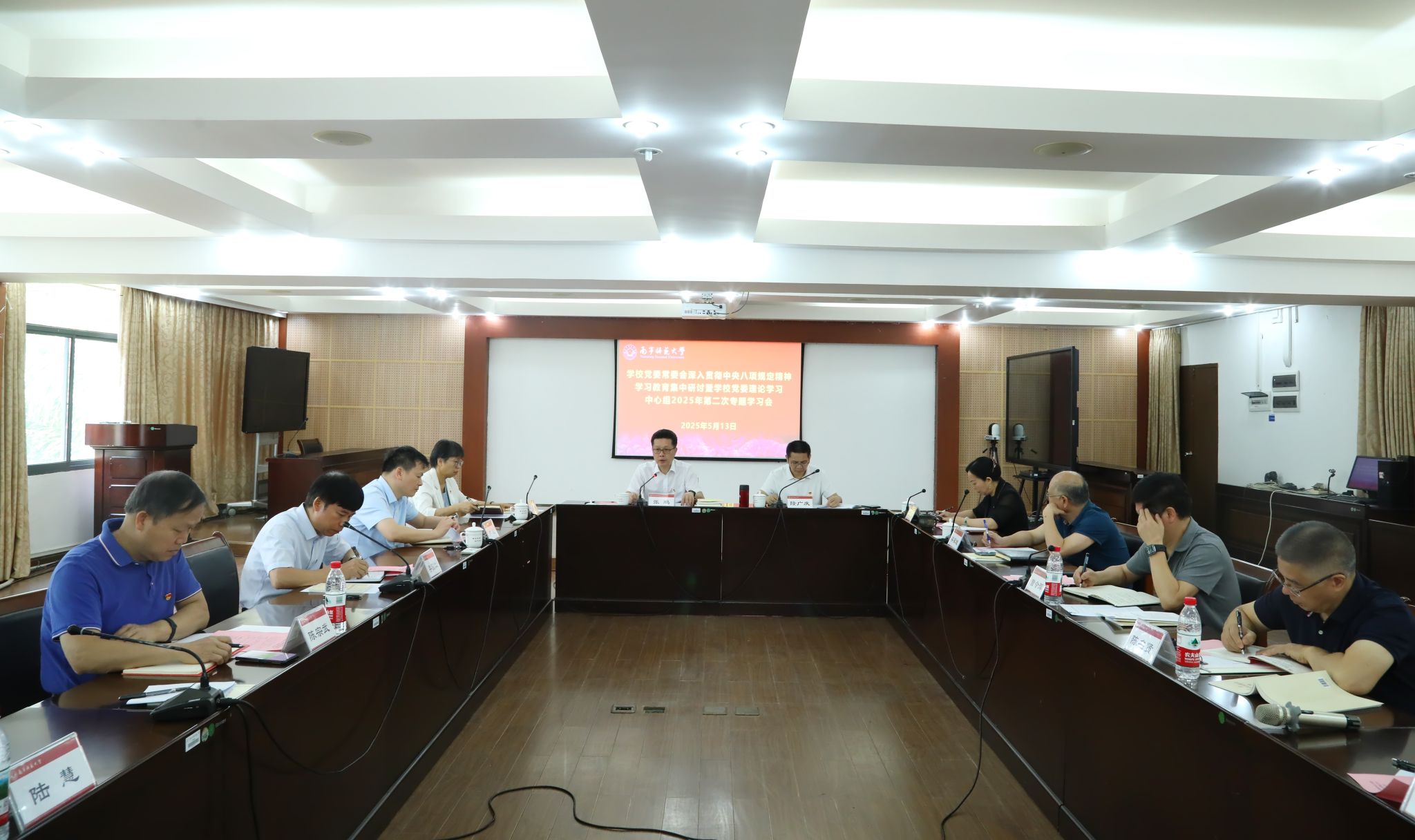 5月13日上午,Beat365党委常委会深入贯彻中央八项规定精神学习教育集中研讨暨学校党委理论学习中心组2025年第二次专题学习会在明秀校区鸿远楼409会议室举行。学校党委书记张鹏主持会议。