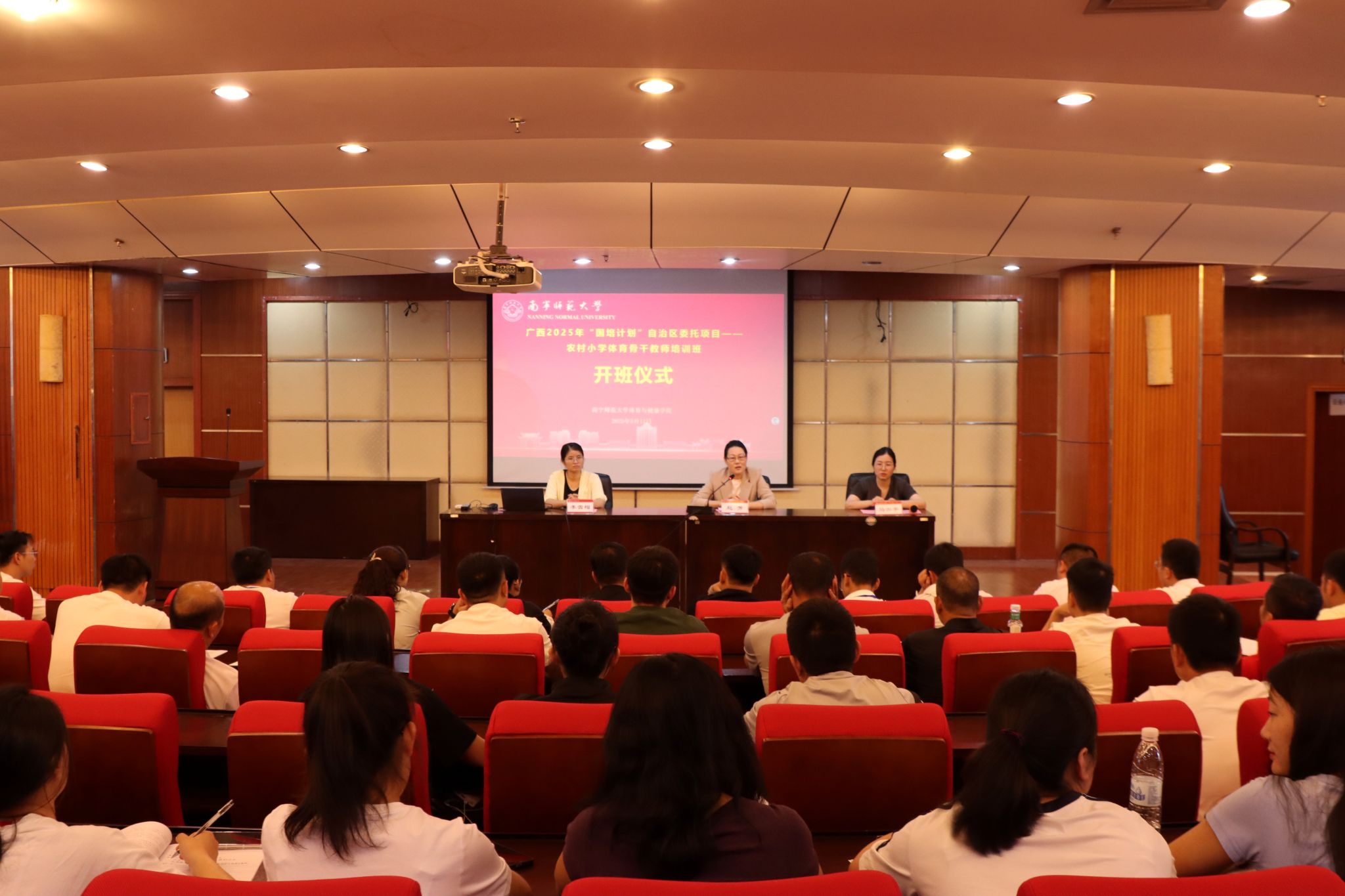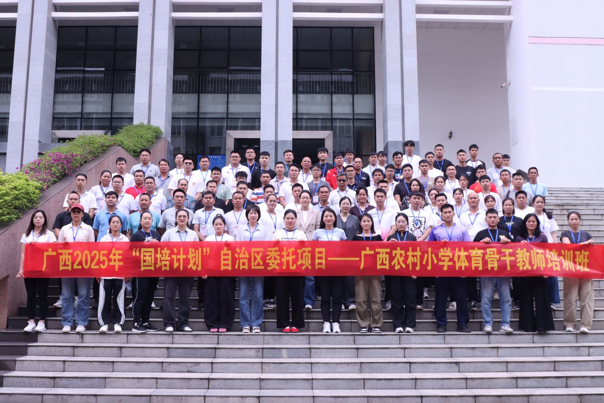 为积极响应国家关于加强农村教师队伍建设的号召,提高广西农村小学体育教师专业素养和教学能力,5月11日,广西2025年“国培计划”自治区委托项目——广西农村小学体育骨干教师培训班在Beat365正版唯一官网必一明秀校区图书馆三楼报告厅顺利开班。Beat365正版唯一官网必一体育与健康学院院长赵芳,院长助理、办公室主任,培训班班主任及来自全区的100名小学体育骨干教师参加。
