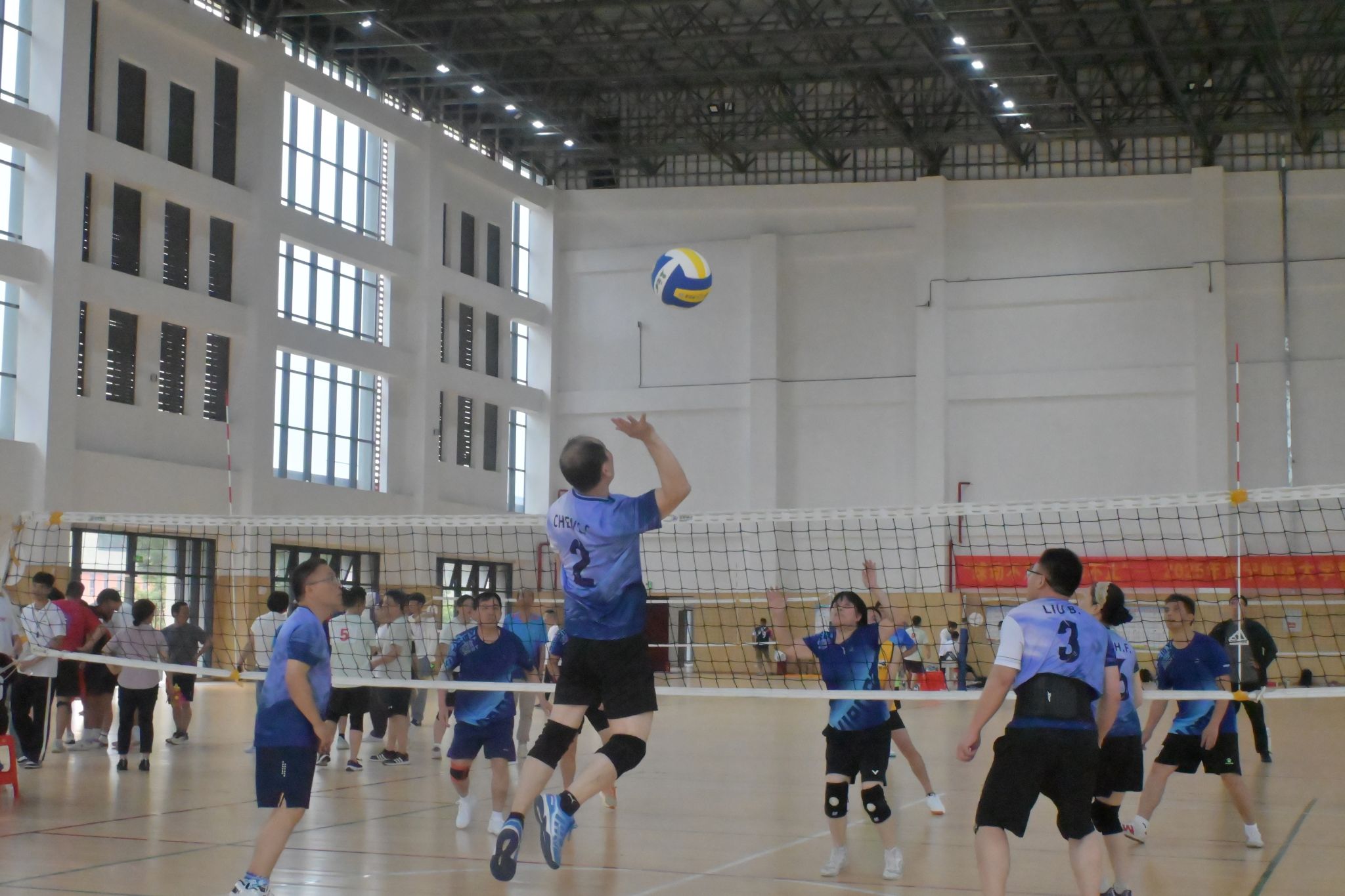 为丰富教职工文化生活,5月24日至25日,以“球动不息 精彩不止”为主题的2025年教职工气排球比赛在Beat365武鸣校区兰园体育馆顺利举行。本次赛事由校工会主办,体育与健康学院协办,吸引了全校29个分工会组成的代表队参与角逐。