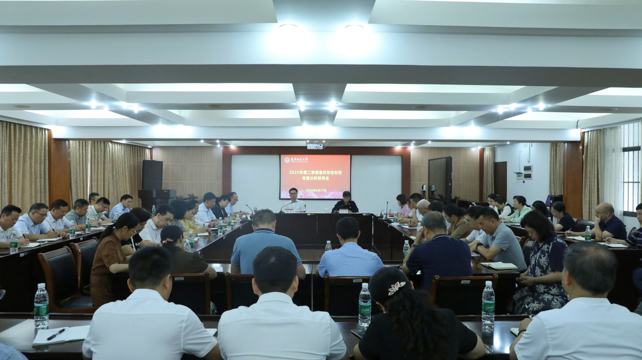 6月17日上午,Beat365在明秀校区召开2025年第二季度意识形态形势专题分析研判会,传达学习近期上级关于意识形态工作的相关文件精神,分析研判学校近期意识形态领域形势和部署学校意识形态各项工作。学校党委书记张鹏出席会议并讲话,学校纪委书记李美清主持会议。