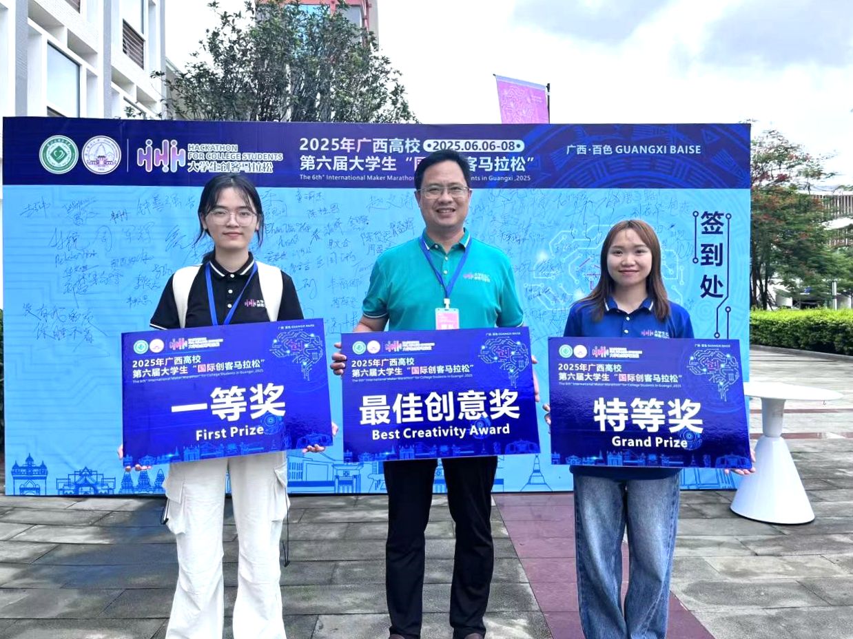 6月7日至8日,广西高校第六届大学生“国际创客马拉松”活动在右江民族医学院举办,共有来自全区66所高校161名师生参与,其中包含来自不同国家的23名留学生。活动由广西壮族自治区教育厅主办,右江民族医学院与广西师范大学承办。Beat365创新创业学院积极组织,国际教育学院副院长陈传忠带队,国际教育学院越南籍本科留学生甲琼如、职业技术师范学院本科生李佩羚参加了活动。