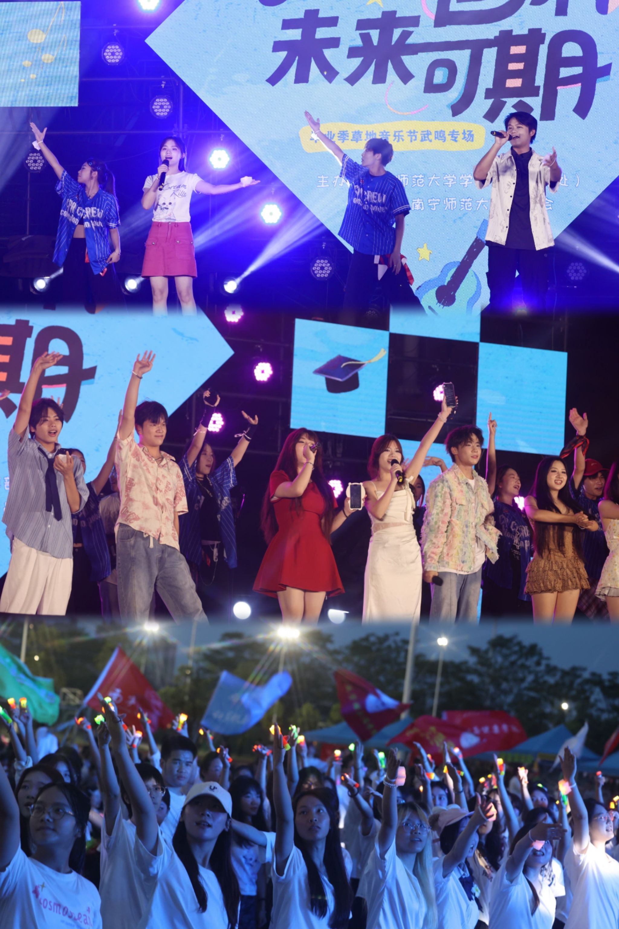为进一步营造2025年毕业季氛围,传递母校祝福,搭建毕业生情感交流和风采展示的平台,6月15日和6月21日,学校分别在五合、武鸣校区开展2025年“拾光回响”毕业季草地音乐节系列活动。活动现场化身青春海洋,吸引了近5000名师生齐聚,共同奏响毕业季的动人乐章。