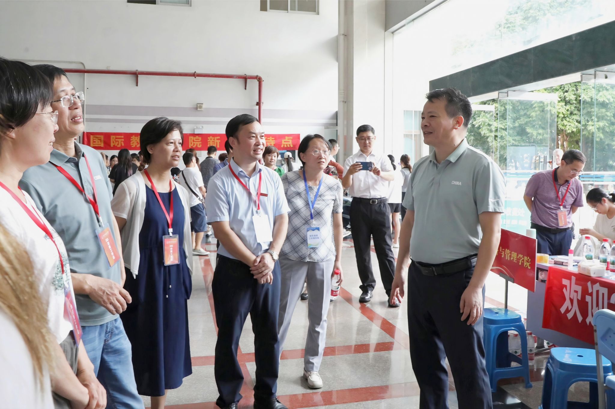 6日上午,学校党委书记张鹏、校长隆广庆、副校长龙妮娜、卢远等校领导分别到五合、武鸣、明秀三个校区迎新现场检查指导工作,与新生及家长亲切交流,看望慰问参与迎新工作的师生员工。