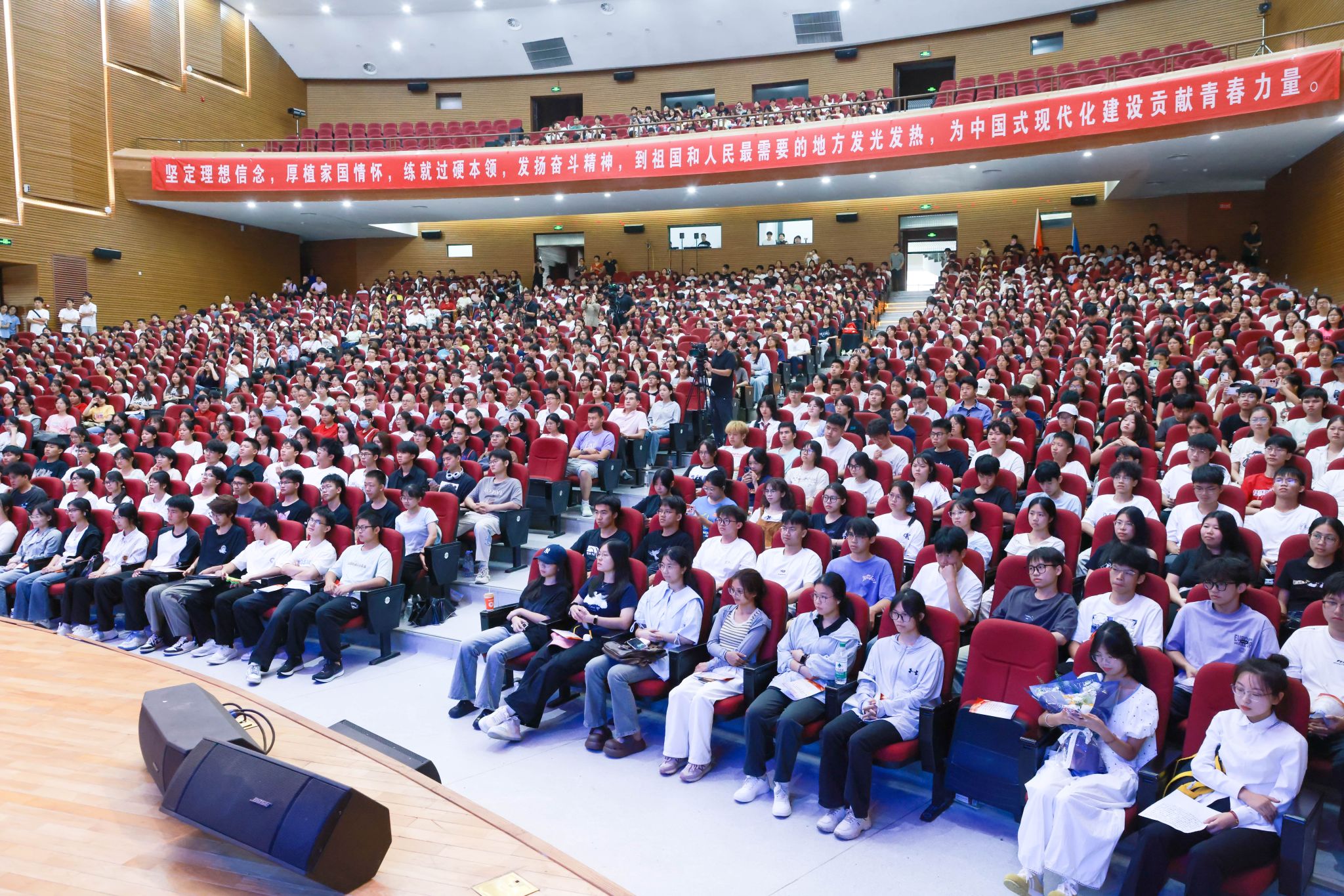 此次活动采取线上、线下的方式进行,相关学院负责人和1200余名2025级新生代表现场参加了活动,其他教职工和新生通过Beat365正版唯一官网必一视频号线上观看了活动直播。