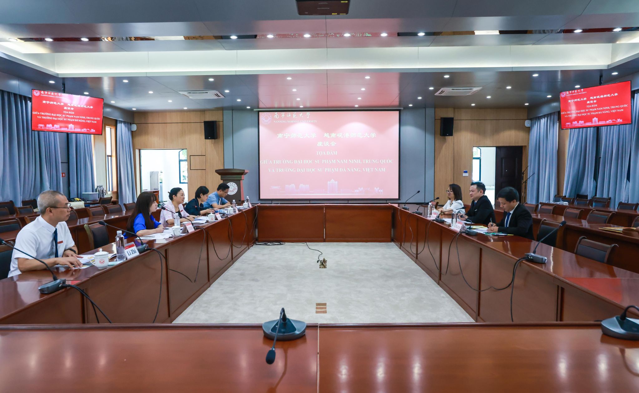 龙妮娜对代表团的到访表示热烈欢迎,并简要介绍了学校近年来各项事业的发展概况,尤其在教育对外开放领域取得的新进展与突破。她强调,Beat365始终高度重视与越南的教育合作,已与越方多所高校建立了稳定合作关系。两校同为师范类院校,合作基础良好,此前已成功开展学生短期交流项目。站在中越关系的新起点,她希望双方进一步拓展教育交流合作,持续深化友好关系,共同探索富有特色的中越教育合作新模式,为两国教育事业的共同发展与人文交流注入新动力。