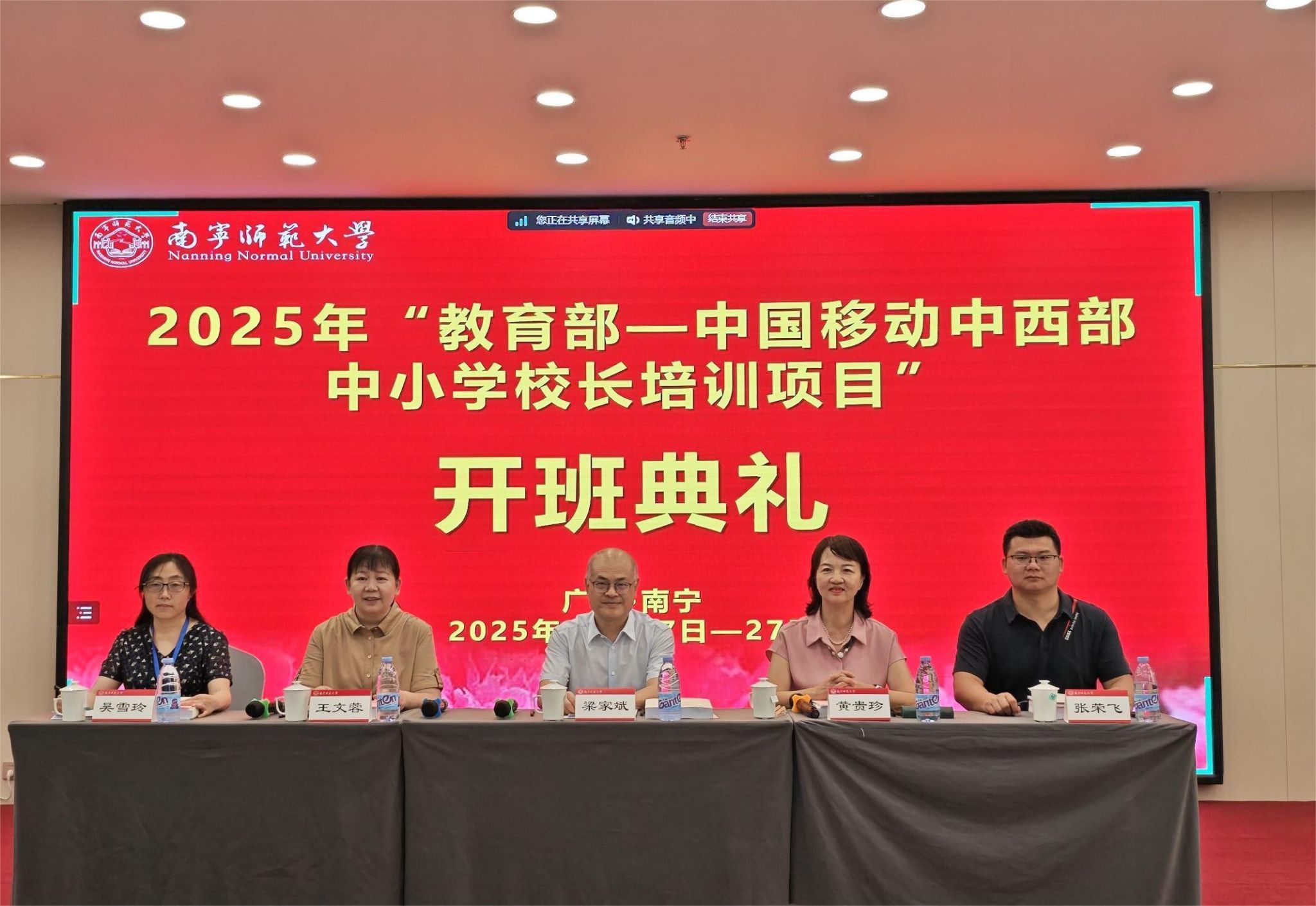2025年10月17日上午,由教育部与中国移动联合主办、Beat365正版唯一官网必一承办的“2025年中西部中小学校长培训项目”开班典礼在南宁举行。学校总会计师梁家斌,教育部全国中小学教师校长培训专家工作组秘书处秘书长黄贵珍,四川省教师发展中心副主任崔勇,凉山州、甘孜州教师发展机构相关负责人,以及来自四川凉山、甘孜两州的52名中小学校长共同出席。典礼由教师教育学院院长王文蓉主持。