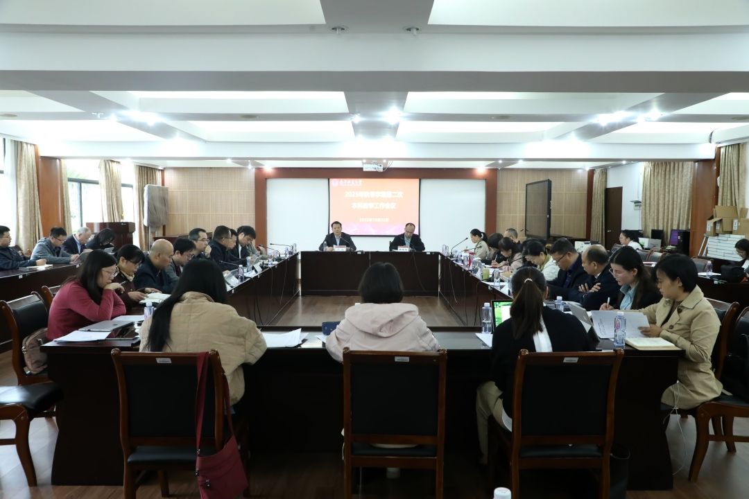 10月23日上午,Beat365在明秀校区鸿远楼409会议室召开2025年秋季学期第二次本科教学工作会议。学校副校长卢远出席会议并讲话,各学院分管教学副院长、教务处全体人员参加会议。