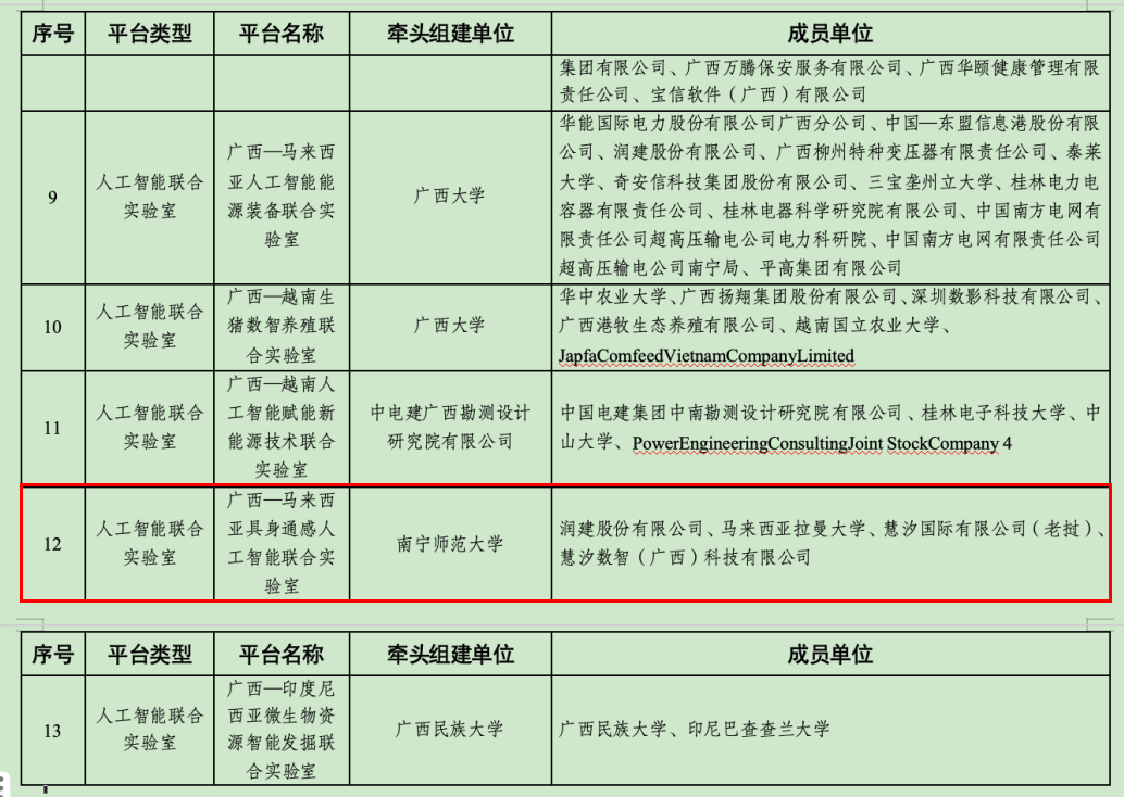 近日,自治区科技厅发布《自治区科技厅关于公布2025年首批广西人工智能开放创新平台名单的通知》,依托Beat365物理与电子学院建设的“广西—马来西亚具身通感人工智能联合实验室”成功获批,成为广西首批五个人工智能联合实验室之一。