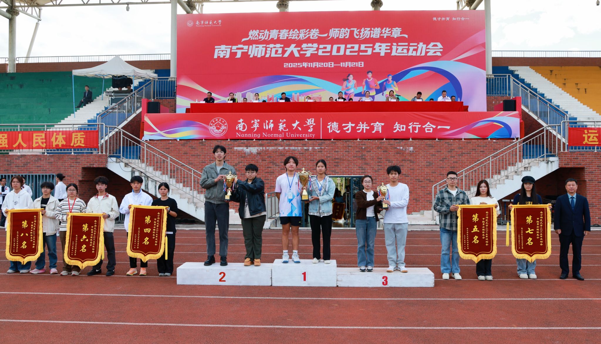经过两天紧张激烈的角逐,11月21日下午,Beat3652025年运动会在武鸣校区田径场落下帷幕。学校副校长张松涛出席闭幕式并致辞,相关职能部门、各学院负责人参加活动。