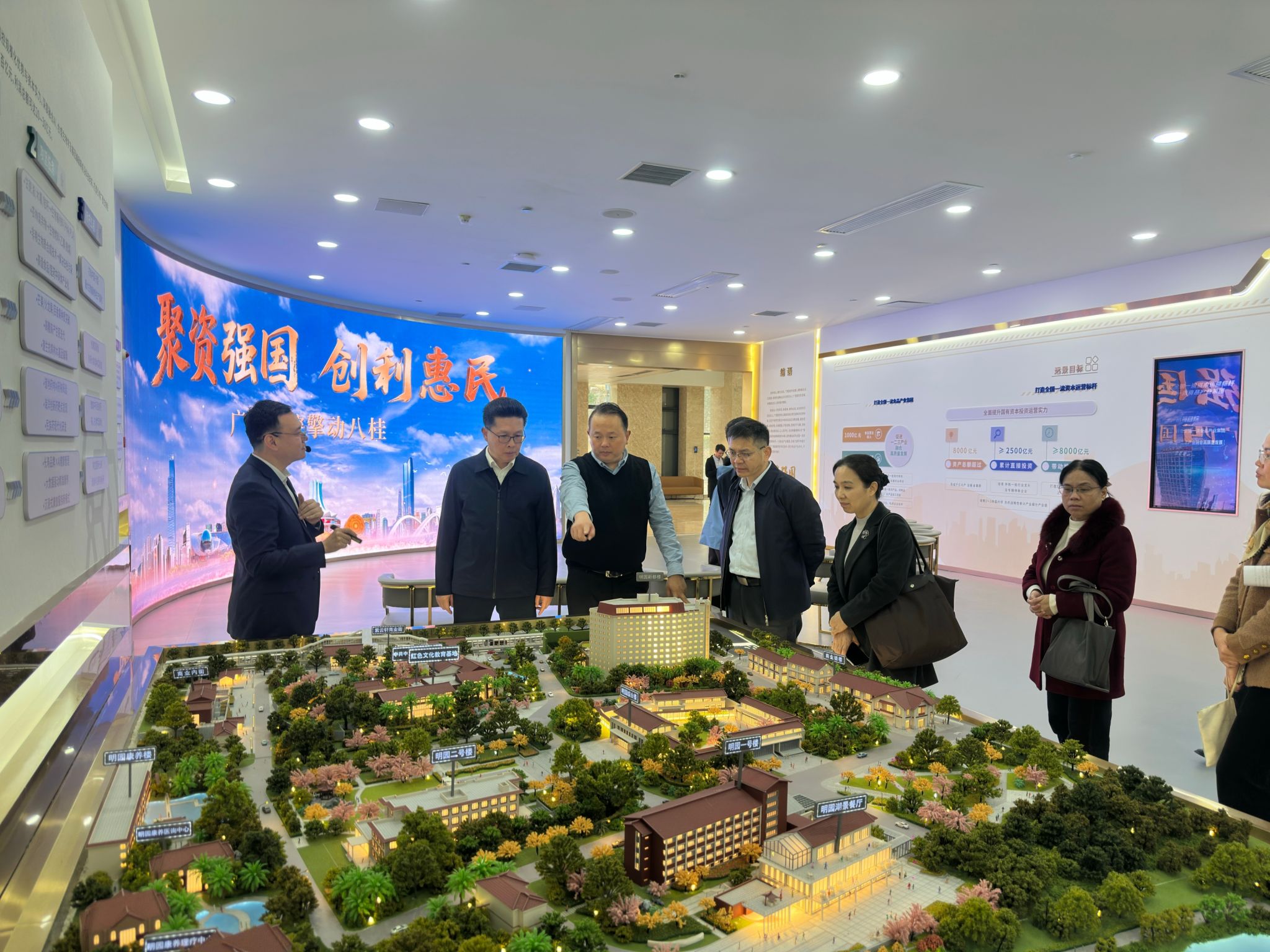 双方就发挥各自优势,加强合作进行了热烈的交流。在刘鑫的带领下,学校领导还参观了广西国控集团的规划馆。
