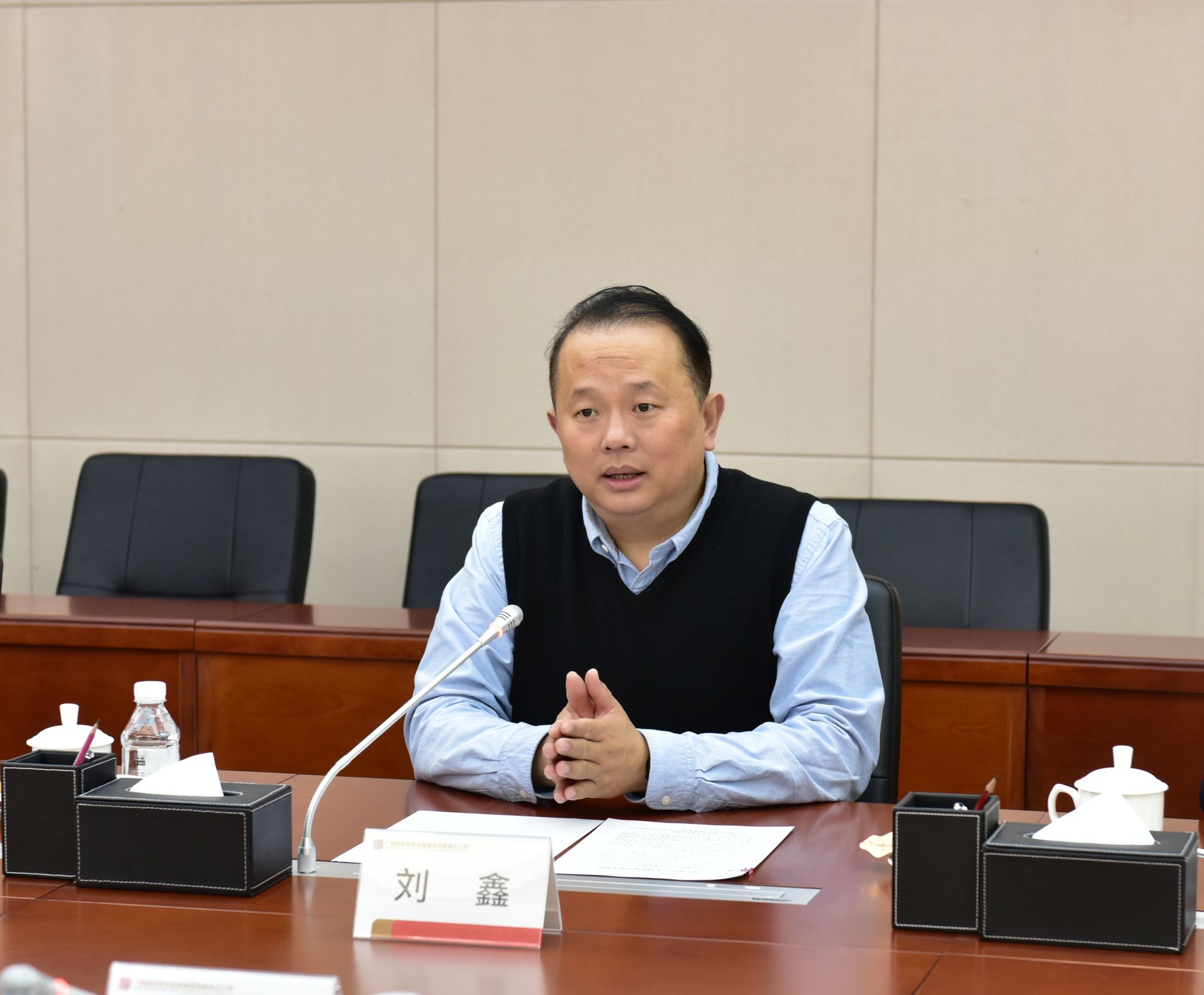 刘鑫介绍了广西国控集团的基本情况,并介绍了集团事业发展的人才需求、科研合作设想,表达了与Beat365在多领域开展合作的意愿。