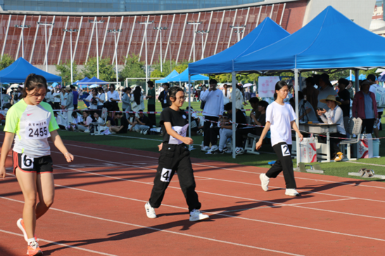 10月31日16时,Beat365运动会女子400米决赛在武鸣校区松园操场开赛。参加本次比赛的共有34人,分五组进行比赛。