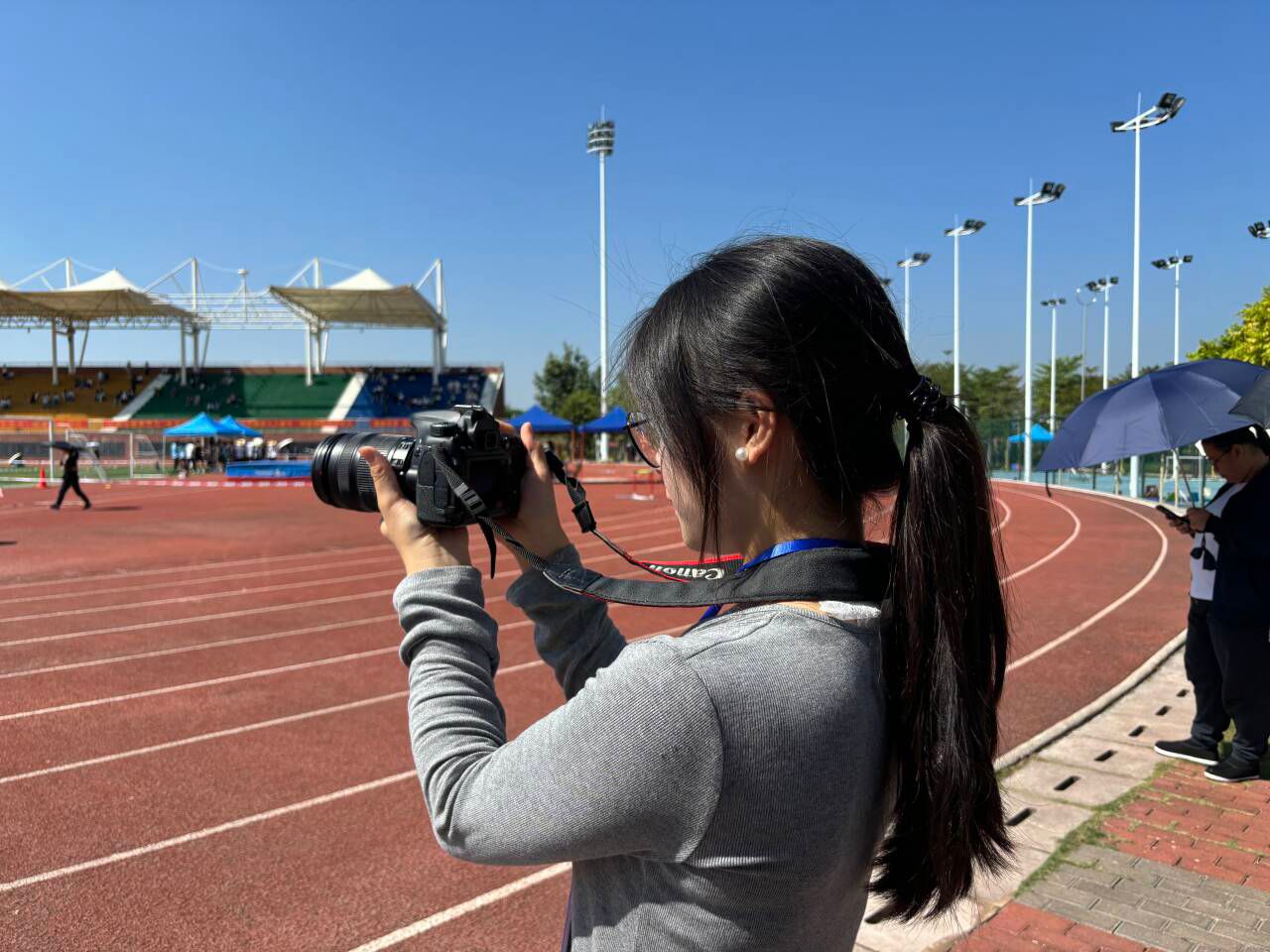 一声声的快门,记录下许多美好的瞬间。这些岁月的足迹,此刻得以定格,运动员的青春朝气,在学生记者的手里得到了最好的体现。