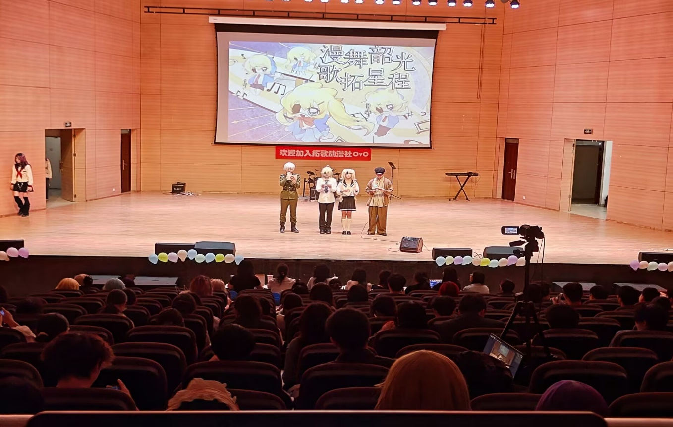 4月26日,为了庆祝拓歌动漫社成立周年,音舞楼内热闹非凡,动漫社举办的社团活动吸引了300多位社员的参与。