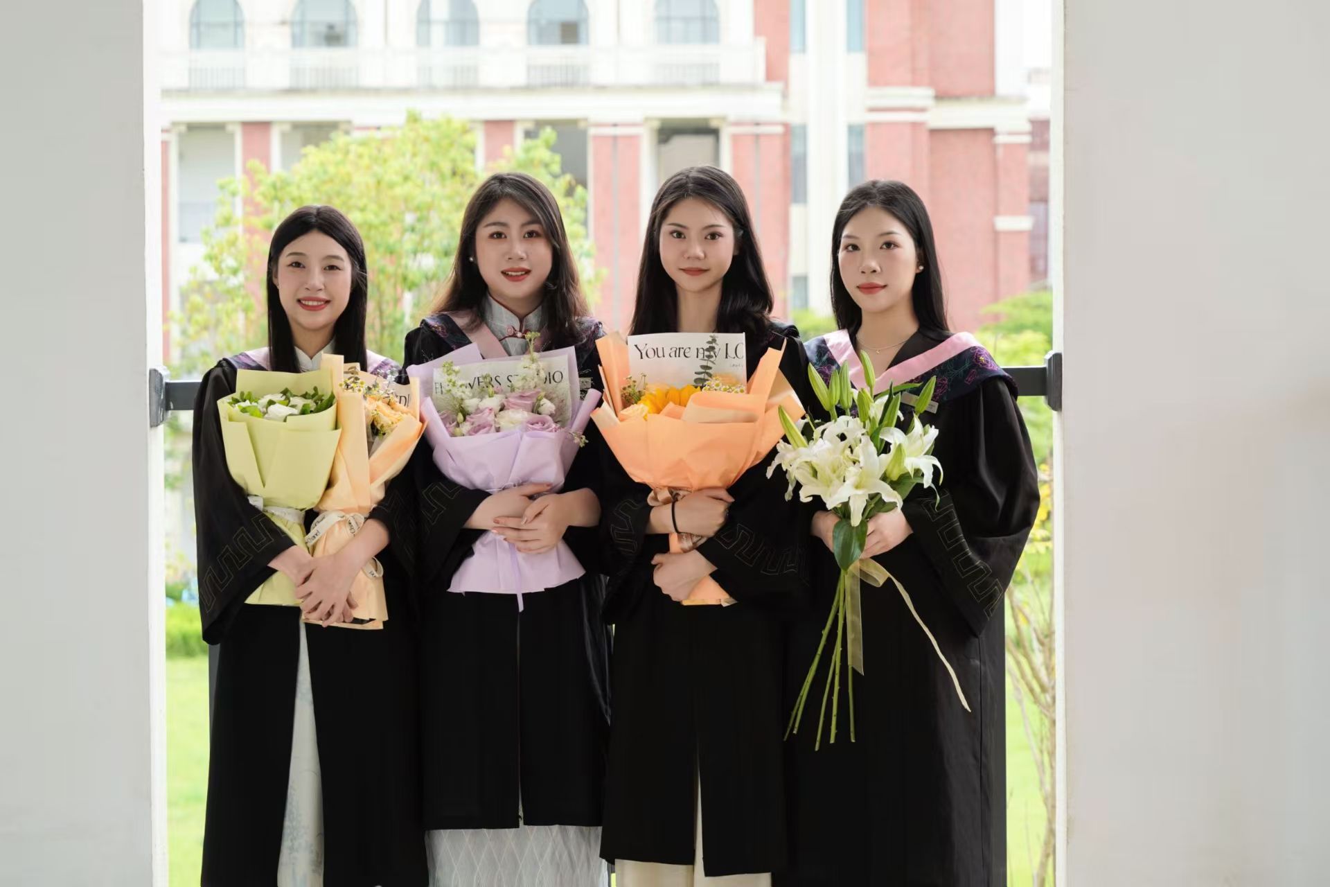 手捧花束,我们并肩站立,眼神中既有离别的淡淡忧伤,更有对未来的坚定信念。这些绚丽的花束,恰似我们多姿多彩的青春,在离别之际绽放出最后的绚烂,也预示着未来的道路将会繁花似锦。