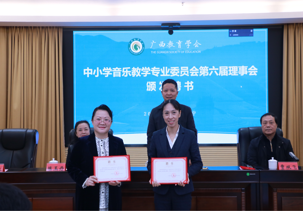 此次换届选举,音乐与舞蹈学院多位教师担任广西教育学会中小学音乐教学专委会第六届理事会重要职务,不仅彰显了学院在广西音乐教育界的重要影响力,也标志着学院在推动区域音乐教育发展中的积极担当。未来,我院将继续深化与全区中小学的合作,培养更多优秀的音乐教育人才,为广西音乐教育事业的发展注入新的动力。