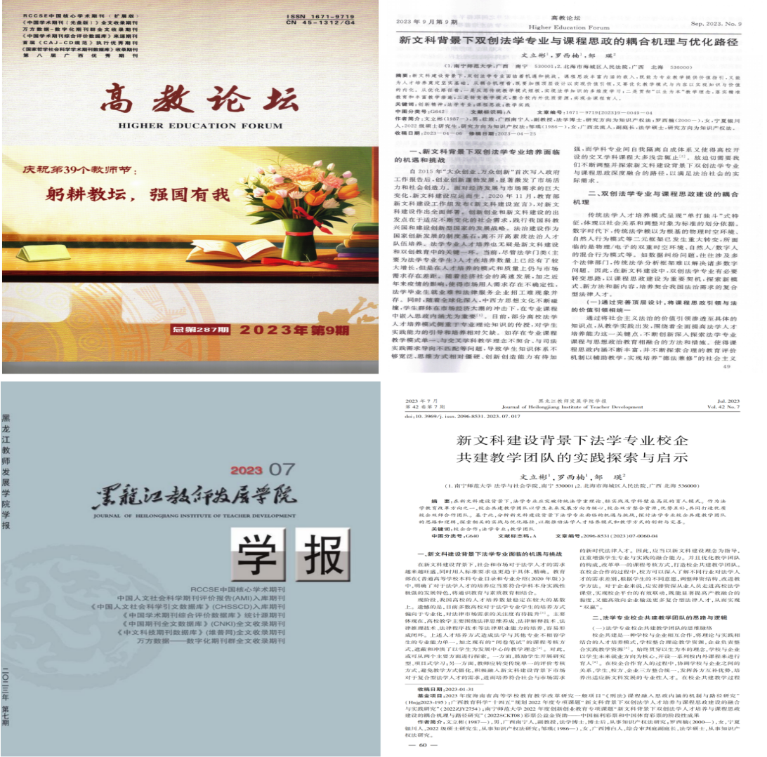 经过三年的实践检验,法社院数字法学人才培养模式取得了丰硕成果。学生在国家级、自治区级大学生创新创业大赛中屡获佳绩。在全国“学宪法讲宪法”活动中,也取得了优异成绩。此外,还成功获批自治区级一流本科课程和课程思政示范课,涌现出了一批优秀的课程改革教师和教学团队,他们的教学经验和成果得到了广泛认可和推广。