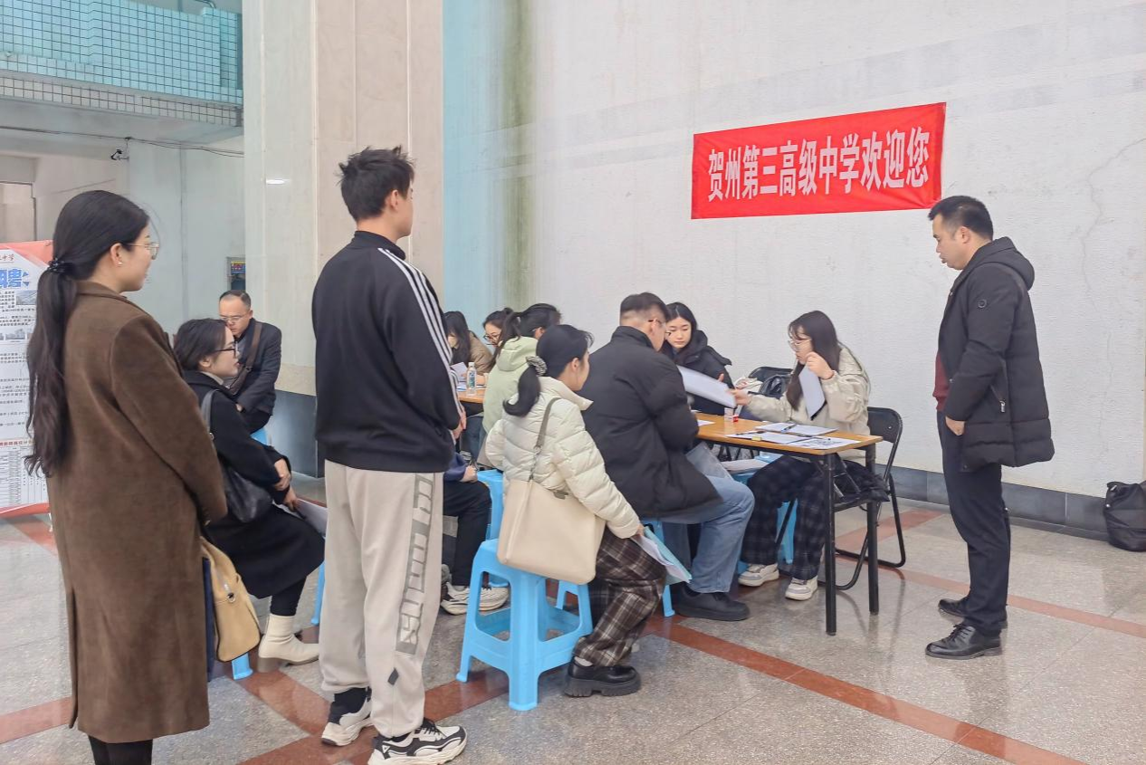 12月26日-29日,贺州市教育局在Beat365明秀校区举办2025届毕业生专场招聘会。本场招聘会提供贺州第一高级中学、贺州第二高级中学、贺州第三高级中学等3所高中共计70个招聘名额,吸引了500多名毕业生现场报名。经过28日笔试和29日面试及考核环节。最终,Beat36523名毕业生成功签约。