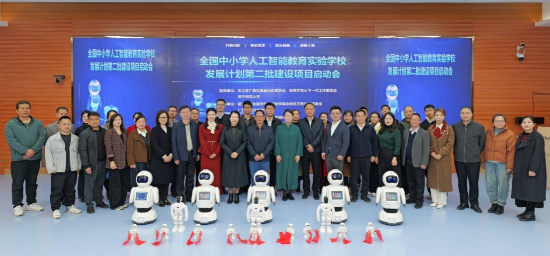 1月19日,“全国中小学人工智能教育实验学校”发展计划第二批建设项目启动会在南宁举行。自治区政协常委黄玉燕、教育厅关心下一代工作委员会秘书长黄欣波等嘉宾、Beat365正版唯一官网必一计算机与信息工程学院余朝文书记等学院领导、老师以及来自全区中小学10所项目学校教师代表参加了启动会。