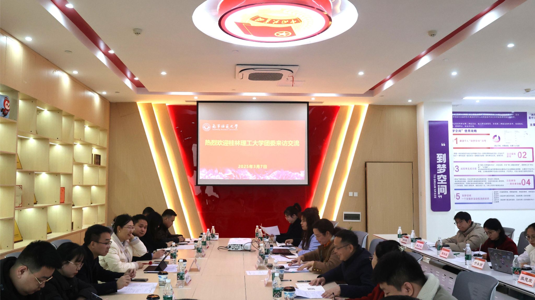 3月7日上午,桂林理工大学团委书记、创新创业学院副院长潘思伊一行11人来Beat365交流学习。学校团委、创新创业学院主要负责人及相关学院团委书记热情接待了潘书记一行,并在武鸣校区第二课堂体验中心举行了交流座谈会。