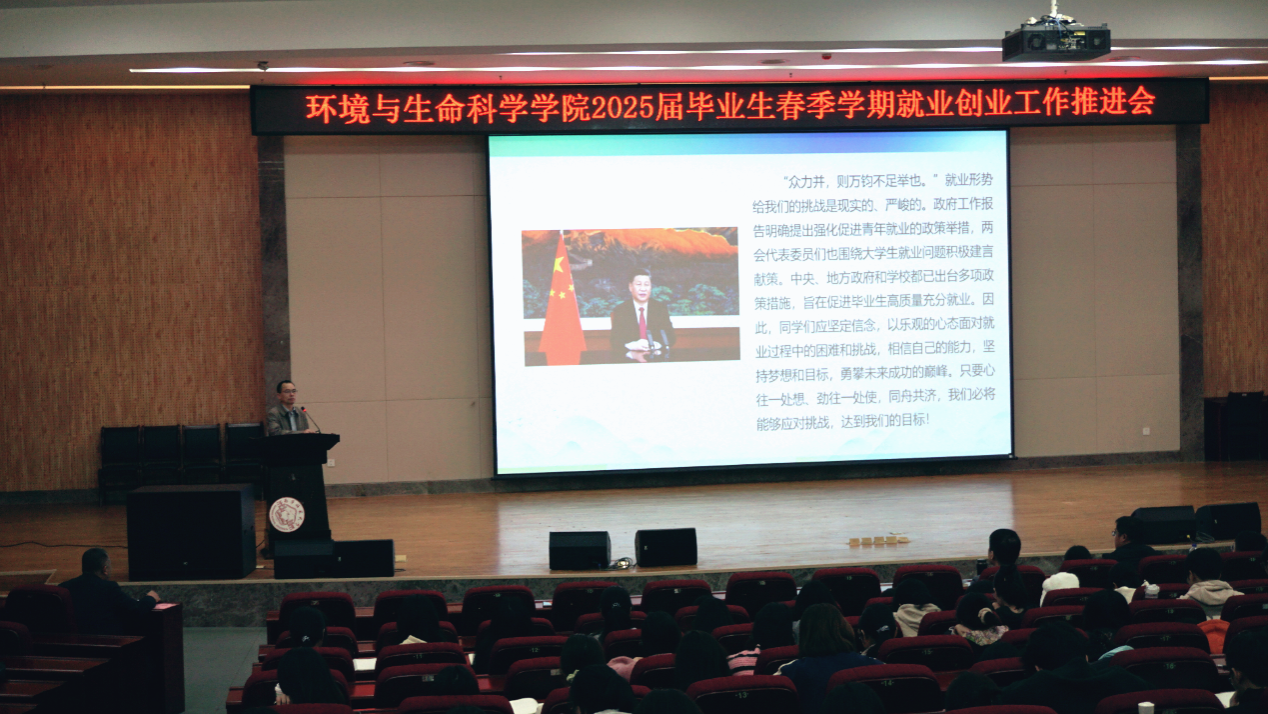 为全力推进毕业生就业创业工作,3月11日,环境与生命科学学院在武鸣校区图书馆报告厅召开2025届毕业生春季学期就业创业工作推进会。学院党委副书记(主持党委工作)韦东林、学院党委副书记刘启满,广西南宁贝塔栖商务服务有限公司总监贝宝珍,学院就业负责人及就业指导教师参会。