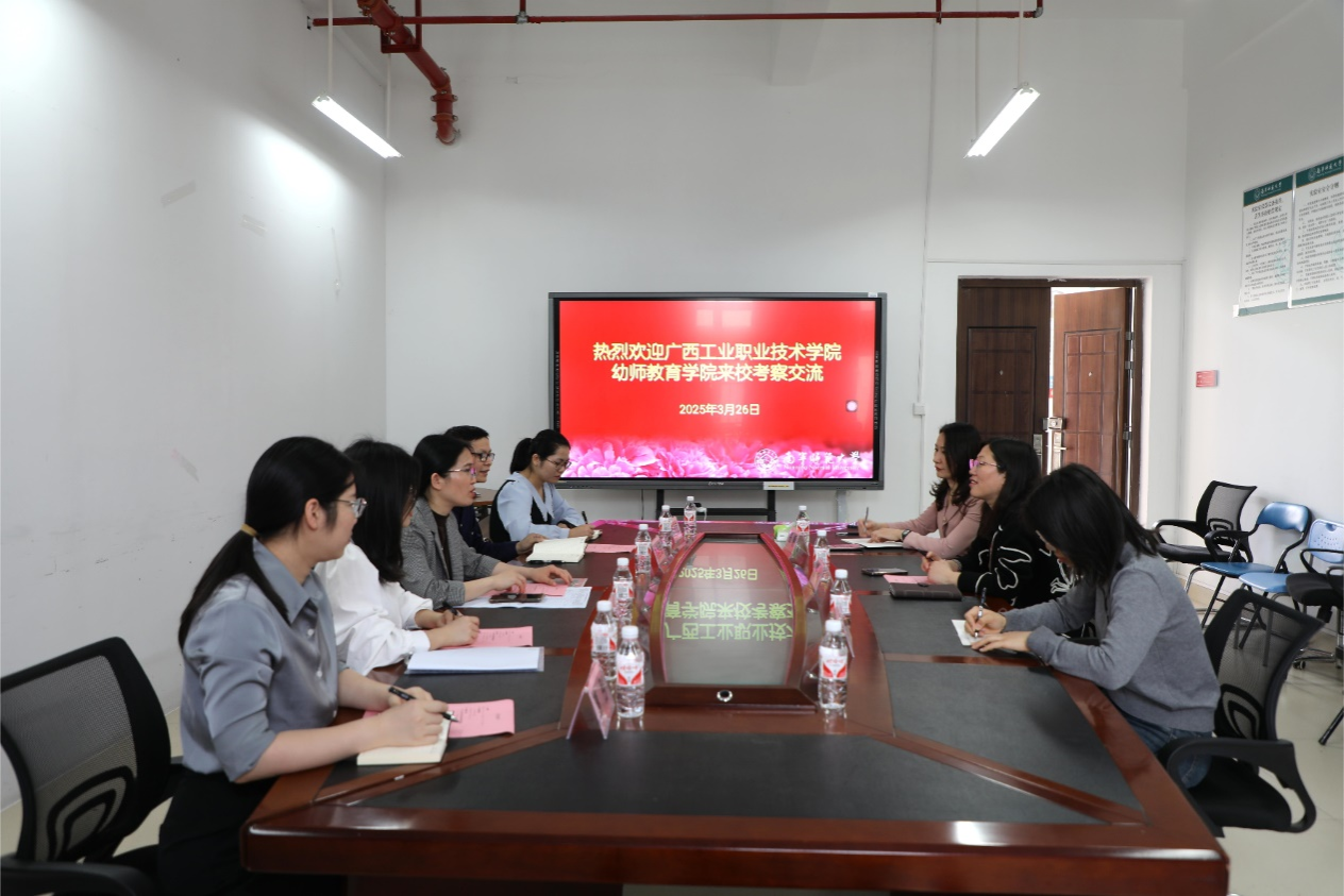 2025年3月26日下午,广西工业职业技术学院幼师教育学院林英副院长等一行5人到Beat365教育科学学院开展交流会。教育科学学院副院长张瑞、学前教育系副主任张媛及科研助理李春炜参加此次交流会。交流会由张瑞副院长主持。