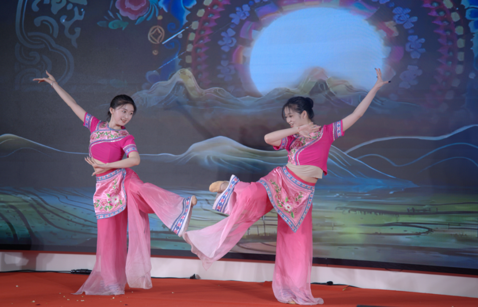 在此次活动中,两位同学身着广西少数民族传统服饰深情演绎了《山歌情》《达努》以及《同行》等多部经典舞蹈作品,她们精湛的表演,将少数民族舞蹈的独特魅力展现得淋漓尽致,令现场观众如痴如醉,高度赞誉。