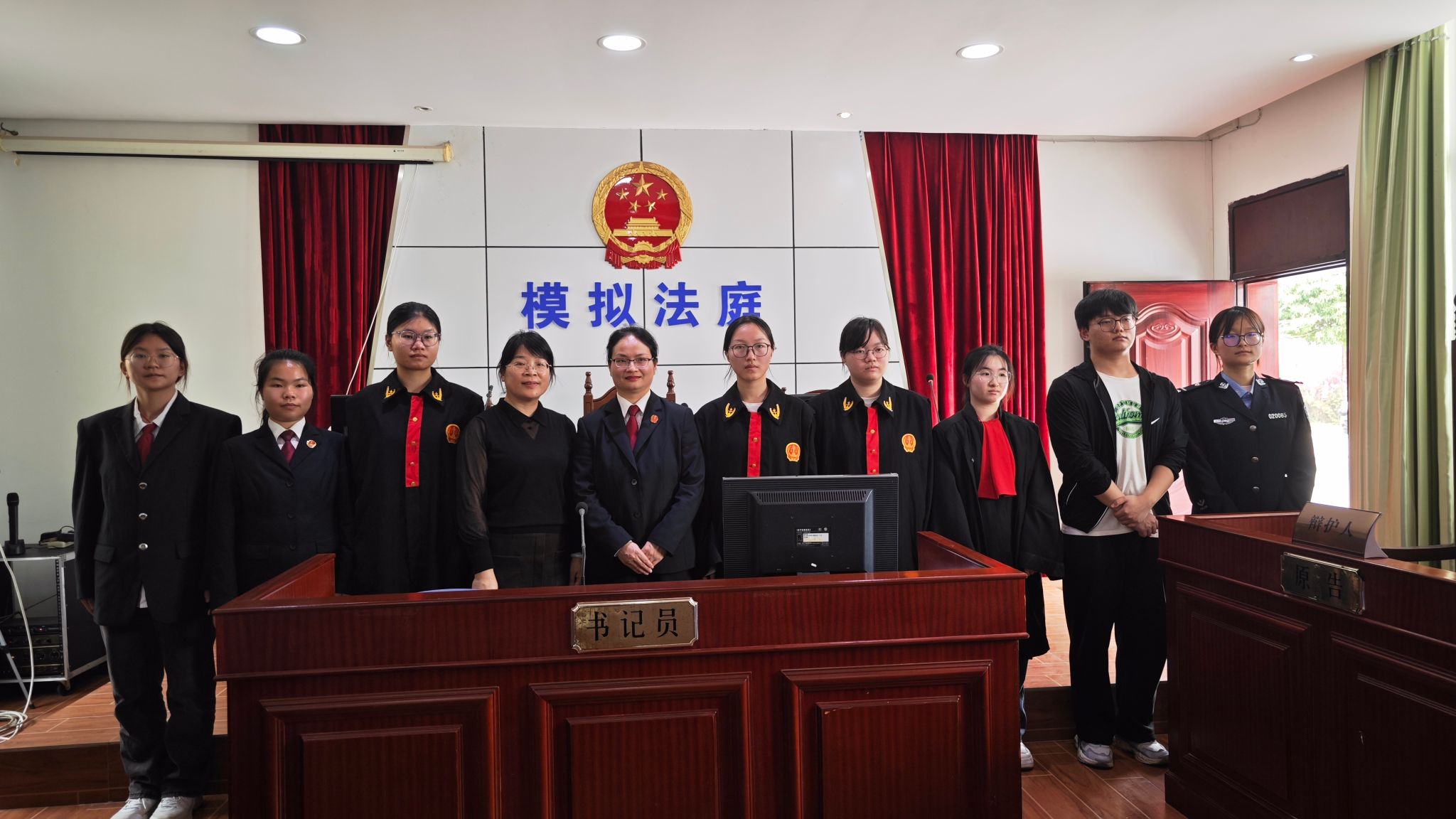 活动伊始,在邕宁区人民法院粟少清法官指导下,12名学生身着法袍、敲响法槌,围绕“校园借贷纠纷”典型案例展开模拟庭审。从法庭调查到法庭辩论,完整还原真实庭审流程。粟法官现场点评时强调:“程序正义是实体正义的保障,每个细节都体现法律尊严。”这种“情景化”普法方式,让《民法典》关于民间借贷利率的规定在学生们心中留下深刻印象。