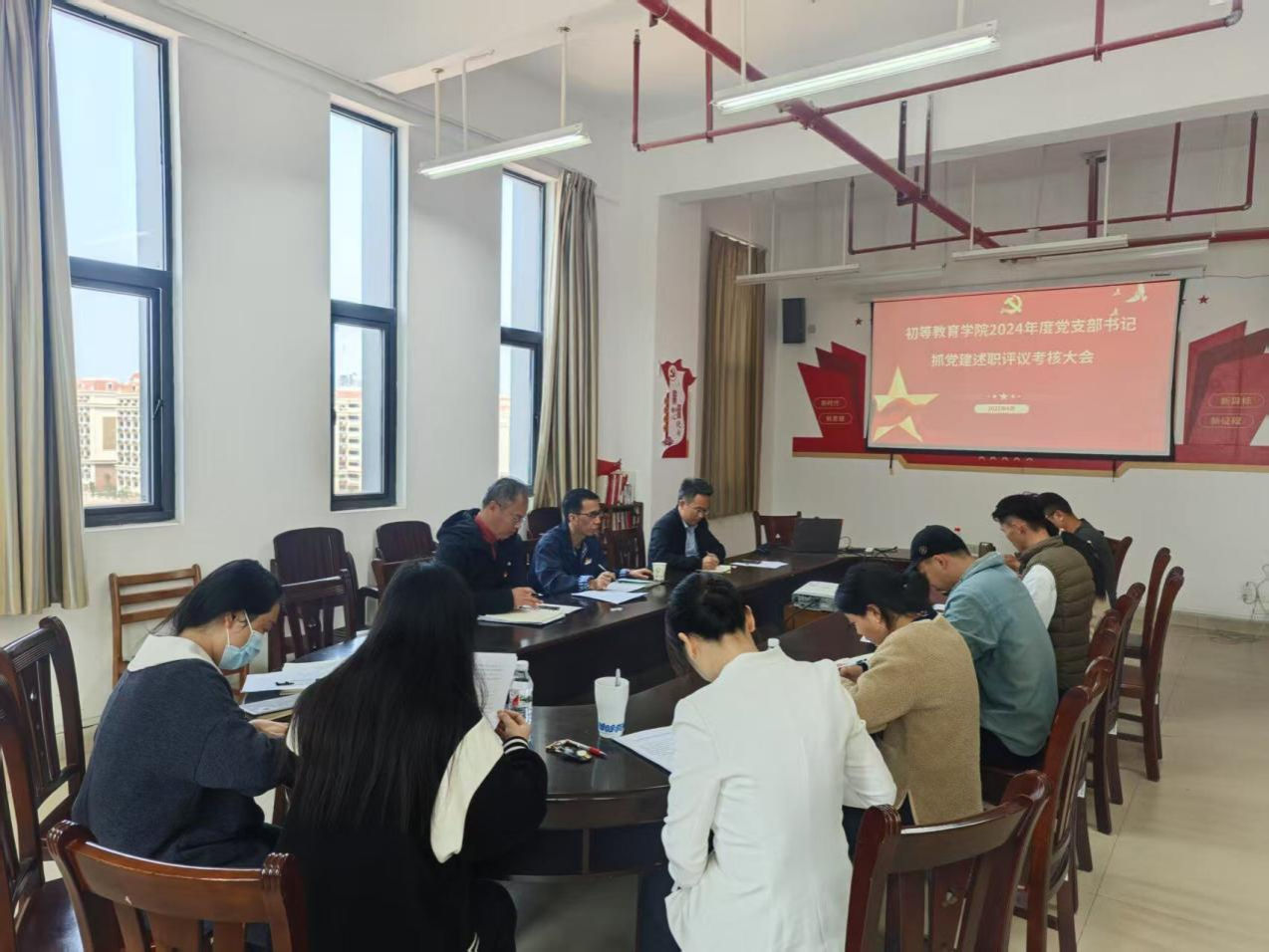 4月2日上午,初等教育学院在理综806会议室召开2024年度党支部书记抓基层党建工作述职评议会,学院党委委员、全体支部书记参加会议。会议由学院党委书记陆以宏主持。