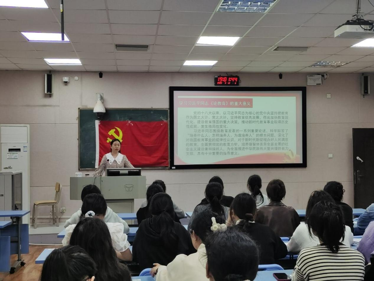 3月中旬,初等教育学院第四学生党支部于五合校区综合楼510召开“学习两会精神,勇担时代使命”专题党课,党课由支部书记李露露主讲,支部全体党员参加会议。