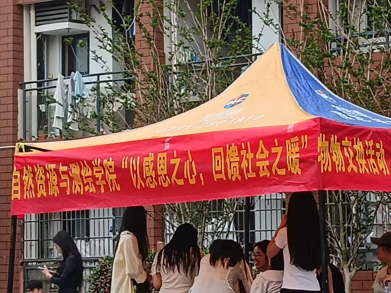 4月12日,自然资源与测绘学院“物物交换·心手相递——让闲置绽放公益之光”活动在桂园11栋广场顺利举行。本次活动由学院学生会资助部主办,面向全院学生开放,旨在通过搭建闲置物品交换平台,减轻困难学生经济负担,同时传递公益精神与感恩情怀,深化“受助-自助-助人”的良性循环。