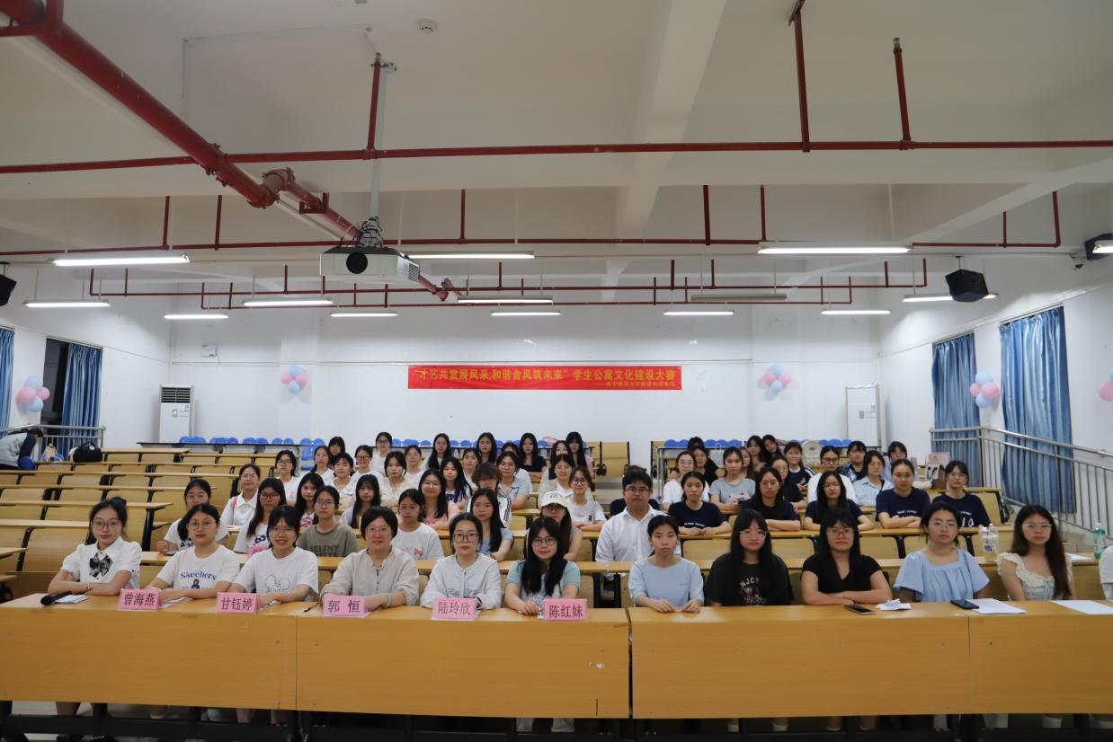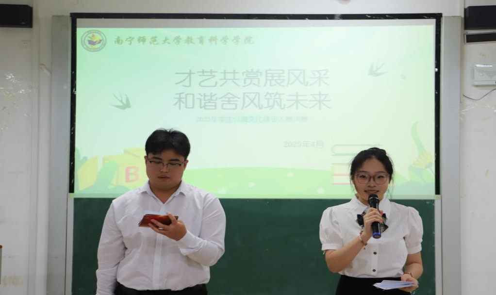 2025年4月18日19:00,Beat365正版唯一官网必一教育科学学院在文综501教室举办学生公寓文化建设大赛决赛。此次活动以“才艺共赏展风采,和谐舍风筑未来”为主题,旨在弘扬宿舍文化,推动文明宿舍建设。到场的嘉宾及评委有辅导员郭恒老师、兼职辅导员陈红妹和陆玲欣、学生会主席团成员曾海燕,还有其他学院代表。