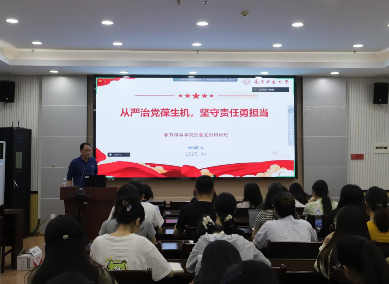 为加强对预备党员的教育培养,提升预备党员的政治素养和党性修养,我院于2025年4月15日19:00在理综1003举办了教育科学学院党委党校第二十一期预备党员培训班开班式。教育科学学院党委书记余朝文、党委副书记谢珊和统战委员郭恒出席了开班仪式。