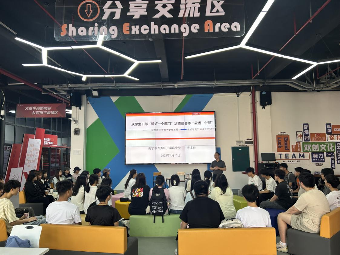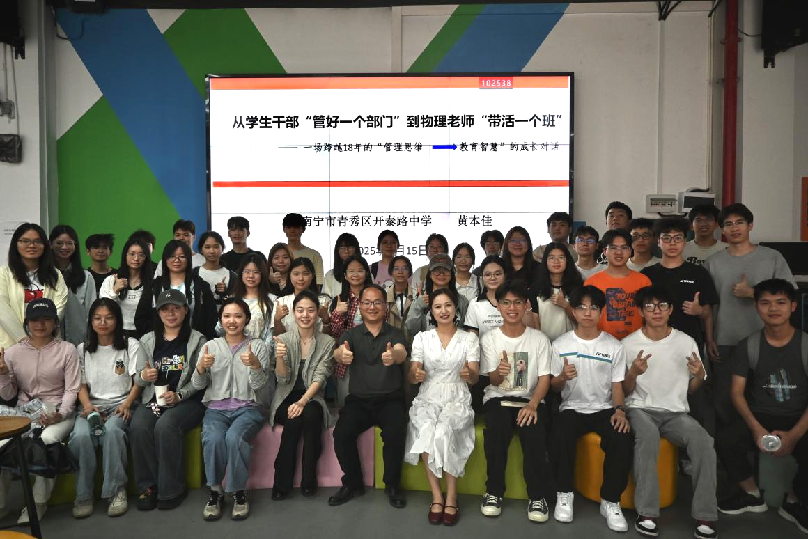 为进一步搭建校友与在校学子之间的交流平台,激励怀揣教育梦想的莘莘学子,物理与电子学院于4月16日上午在Beat365正版唯一官网必一创新创业孵化园成功举办了首期“师生共话 薪火相传”分享交流会。此次活动特别邀请了杰出校友黄本佳、林丽玲(现为青秀区开泰路中学教师)回到母校,与在校师生进行深入交流。