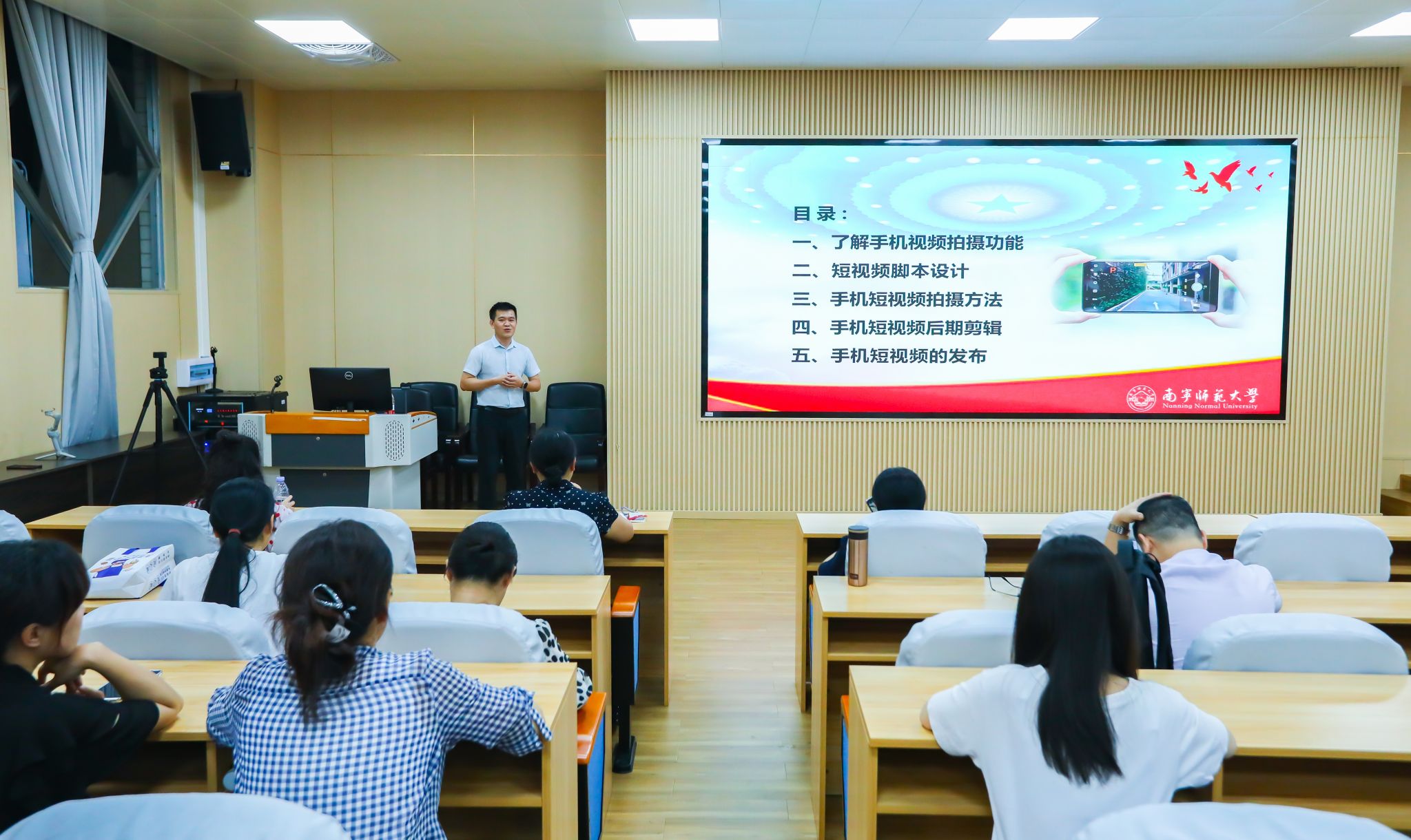 宣传部农之天老师为大家详细介绍了手机的各项拍摄功能,手机短视频脚本设计、运镜技巧、后期剪辑及发布方式。