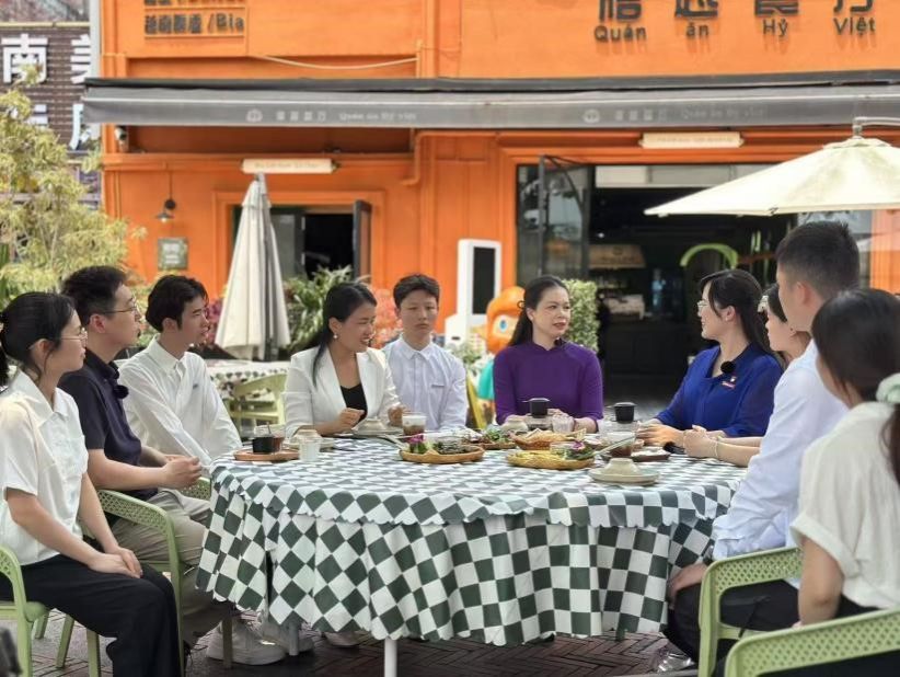 第三站,师生走访了禧越餐厅、国门街、侨批馆。Beat365正版唯一官网必一冯舒讌老师以《国门下的繁荣——中越命运共同体》为主题,带领大家与餐厅经营者、商铺售货员、展馆讲解员进行深入交流。在禧越餐厅,餐厅主人热情地与我们分享了中越饮食文化交融的故事;在国门街,经营者们忙碌的身影展现着边境贸易的繁荣景象;在侨批馆,一件件承载着老一辈海外侨胞创业史与家国情怀的文物,诉说着中华民族讲信誉、守承诺的优良传统。冯舒讌结合当地实际,生动讲述了中越两国在经贸合作与文化交流等方面的互联互通,让师生们深刻理解了“构建具有战略意义的中越命运共同体”的深刻内涵。