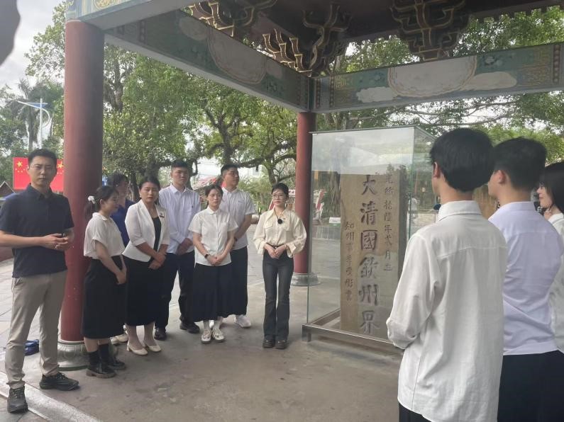 师生们首站来到东兴市“大清国钦州界”界碑处。防城港职业技术学院黄琼锌老师以《界碑前的忠诚——爱国精神、民族团结的传承》为主题展开教学。同学们近距离触摸界碑,深刻认识到每一寸国土都凝聚着先辈的心血,捍卫国家领土主权完整是每个中华儿女义不容辞的责任。学生们纷纷表示,此次实地学习让他们对国家主权和边境历史有了更直观、更深刻的认知,今后定当发奋学习,为祖国的繁荣昌盛贡献自己的青春力量。