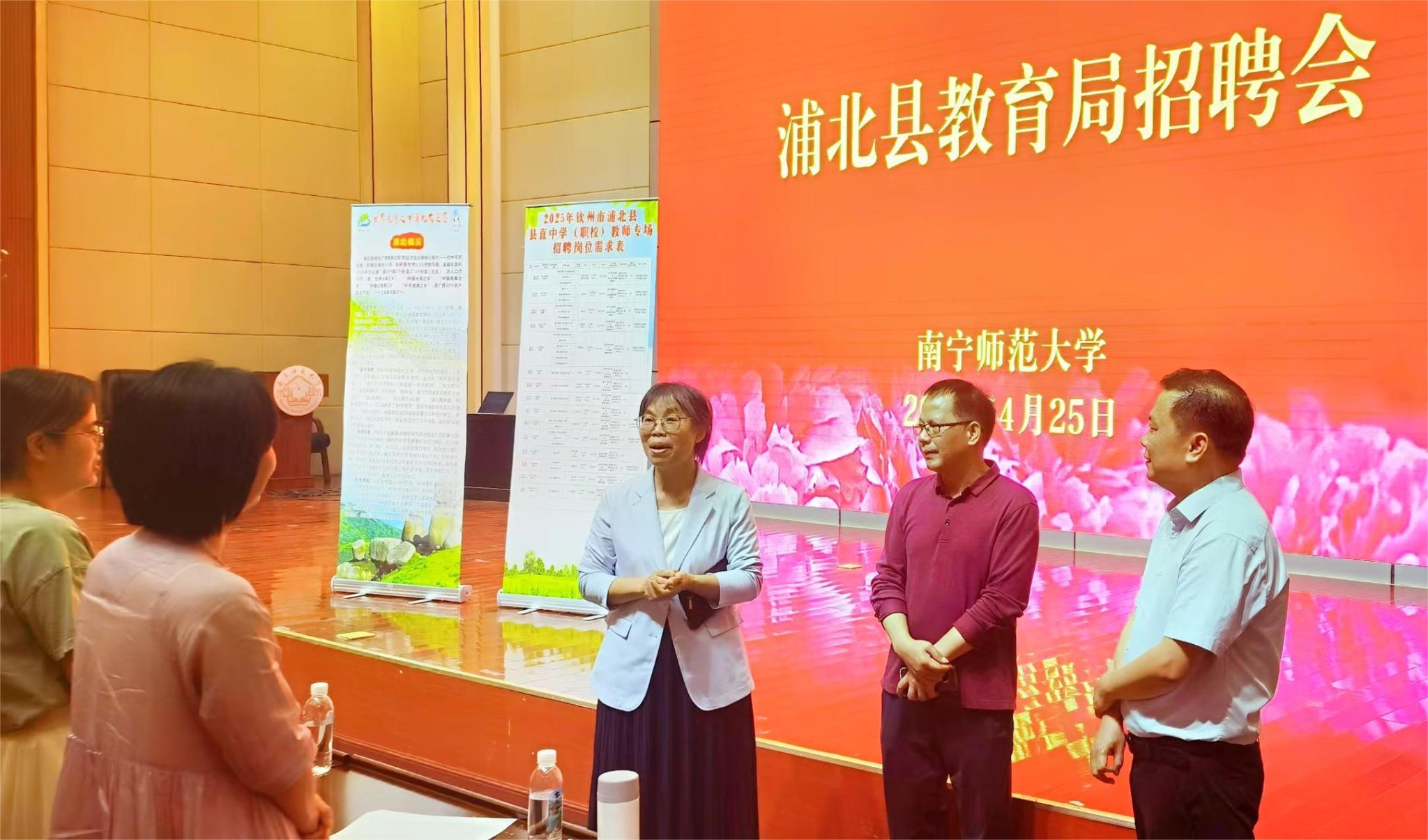 4月24日至27日,钦州市浦北县教育局在Beat365五合校区举办2025届毕业生专场招聘会。此次招聘会提供浦北县中学、浦北县第二中学、浦北县第一职业技术学校等8所学校共计55个招聘岗位,来自不同专业的200余名毕业生参加了此次招聘会。